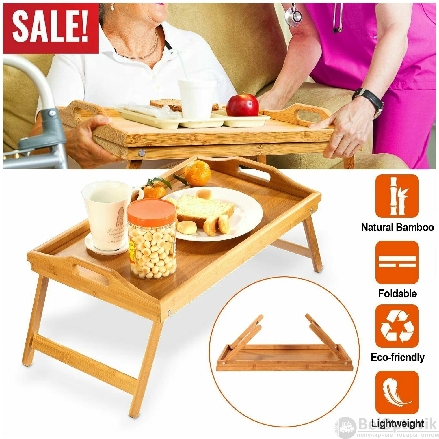Купить деревянный сервировочный столик для завтрака в постель Table Тray / Складные ножки на нашем сайте можно ОПТОМ от 20 шт. или не менее 5, если Вы покупаете у нас и другие товары (сборный заказ).