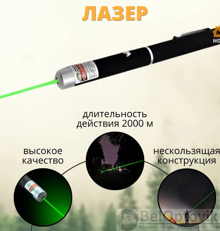 Лазерная указка работает на 2 батарейках ААА (в комплект не входит)-1шт.