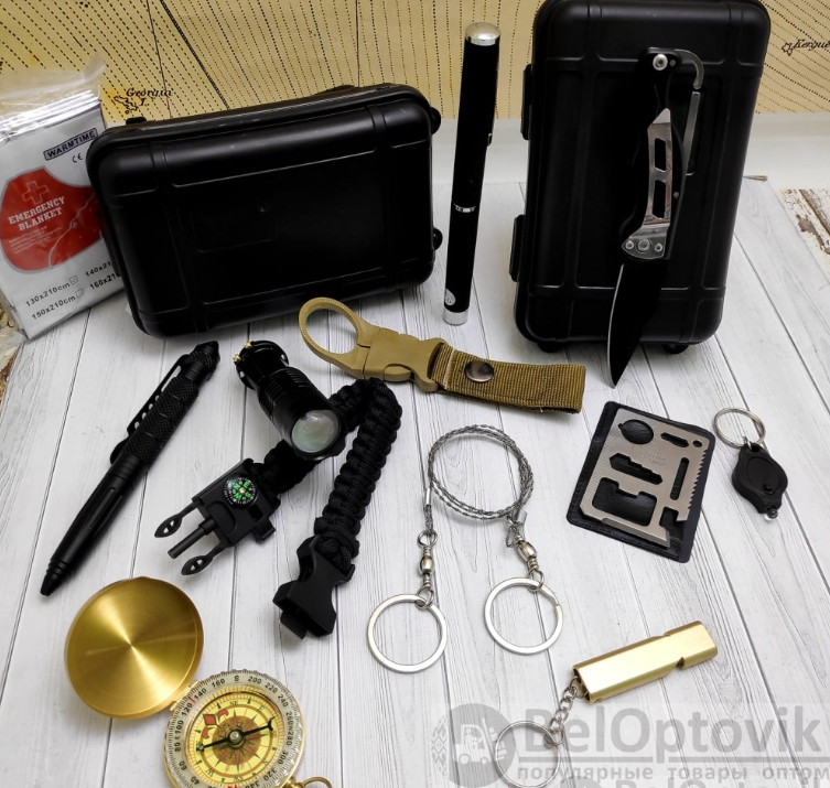 Купить Набор для выживания (походный набор ) в кейсе, 13 предметов на нашем сайте можно оптом от 20 шт. или не менее 5, если Вы покупаете у нас и другие товары (сборный заказ).