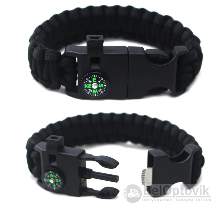 Тактический браслет плетеный с огнивом и наручным компасом, с плетеной веревкой -2м: изготовлен из магния и железа, подходит для разжигания огня в любую погоду и на любой высоте-1шт.