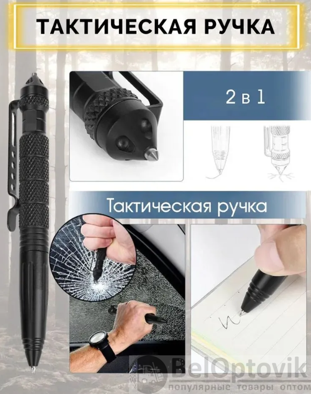 Тактическая ручка: изготовлена из вольфрамовой стали, компактная-1шт.