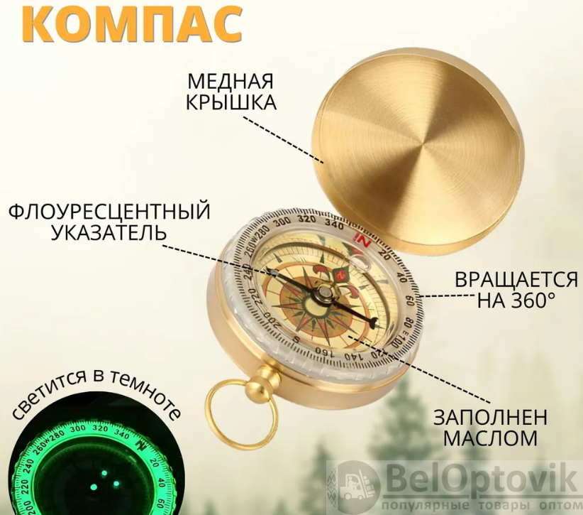 Компас: улучшенный с вращающейся на 360 градусов рамкой, подсвечивается в темноте-1шт.