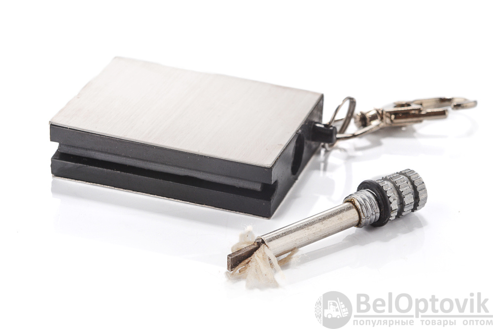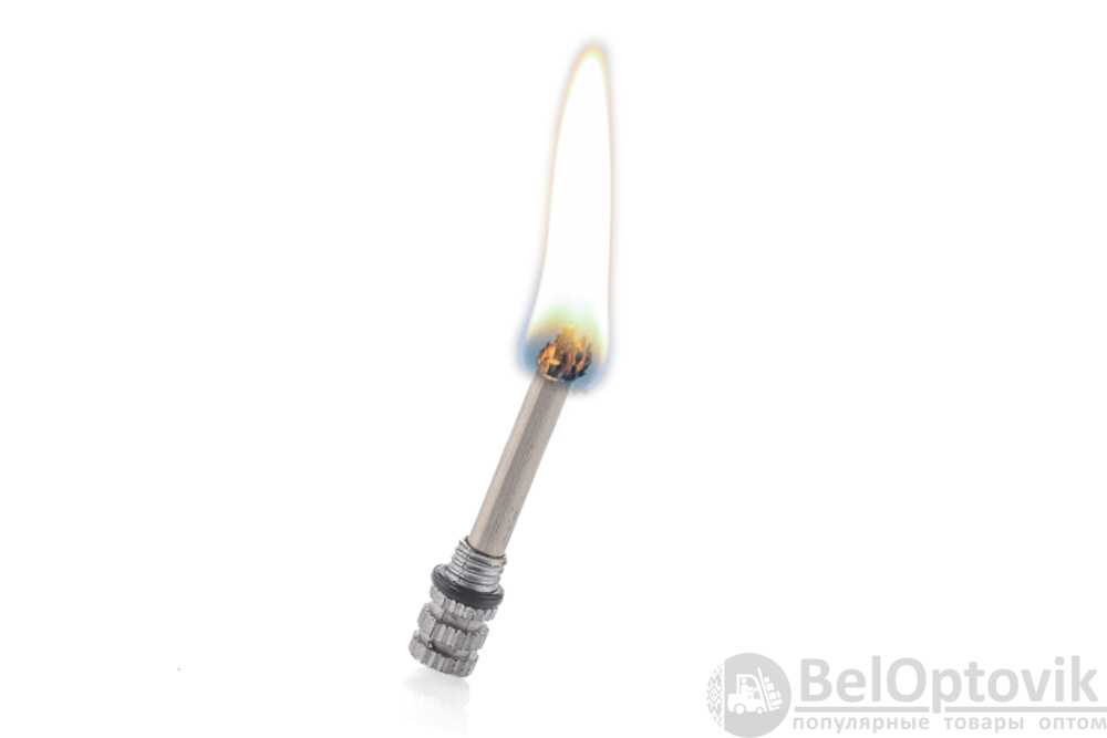 Вечная спичка R2003 вечная спичка всегда поможет разжечь костер до 10 тысяч раз. Работает по принципу зажигалки и спичек одновременно. Она выполнена в виде брелка, что позволит всегда иметь под рукой источник огня. Зажигалка представляет собой металлический корпус с помещенной в него спичкой и расположенной с боку поверхностью для высекания искры (огнивом). Спичка изготовлена в виде прочной металлической трубки, в которой находится фитиль, а на конце спички закреплен кремень. Корпус заправляется горючей жидкостью, которая пропитывает фитиль. Из корпуса спичка выкручивается по резьбе, необходимо чиркнуть кремнем по боковой поверхности корпуса зажигалки и спичка воспламеняется. Помещенная в корпус спичка вновь впитывает горючее и готова к дальнейшему использованию.