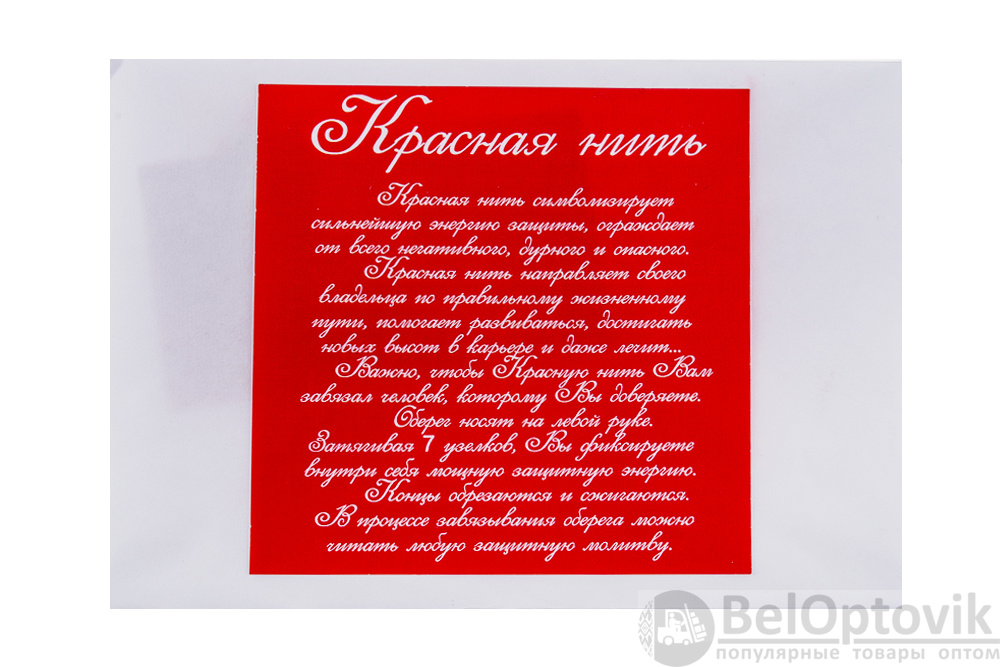 Красная нить из Иерусалима красная нить Каббалы обеспечивает длительную защиту и оберег для всей семьи. Красная нить является препятствием для негатива и повязывается на левую руку. Завязывать её должен человек, которому вы полностью доверяете. Пока вам будут повязывать красную нить, вы должны читать молитву, которая защитит от сглаза. Чтобы нить работала еще сильнее, рекомендуется прочитать вслух определенные слова формулу Бэна Пората