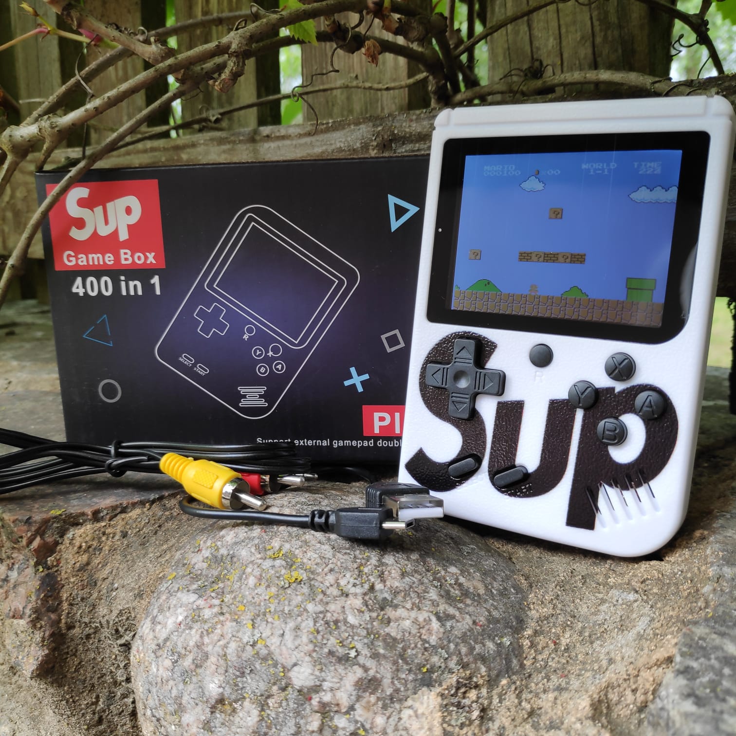 Игровая приставка Sup Game Box PLUS Retro 400 in 1 2.8 TFT 8 BIT 400 в 1 содержит комплекс полноценных игр. Среди них такие легендарные, как все части Mario, Pacman, Contra, Donkey Kong это базовая коллекция хитов приставки GameBoy. Создатели предусмотрели несколько режимов работы: игровая консоль, аудиоплеер, видеоплеер, букридер, проводник. Подключается без проблем к TV, чтобы насладиться игрой на большом экране. Записанные на карту памяти игры сортируются по алфавиту.