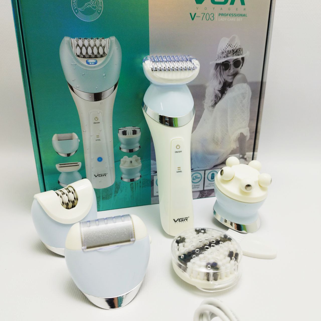 Профессиональный женский эпилятор VGR V-703 VOYAGER PROFESSIONAL LADY CARE SET 5 в 1 (5 насадок) - 1 шт.;