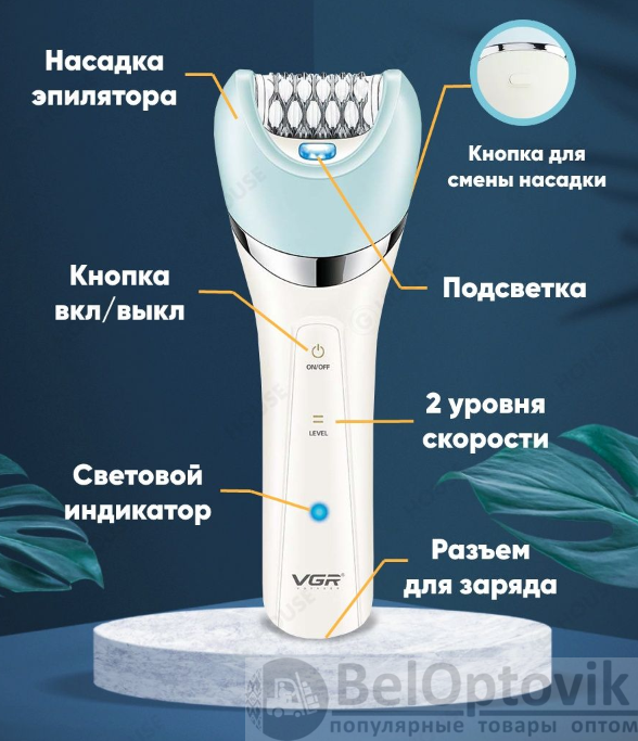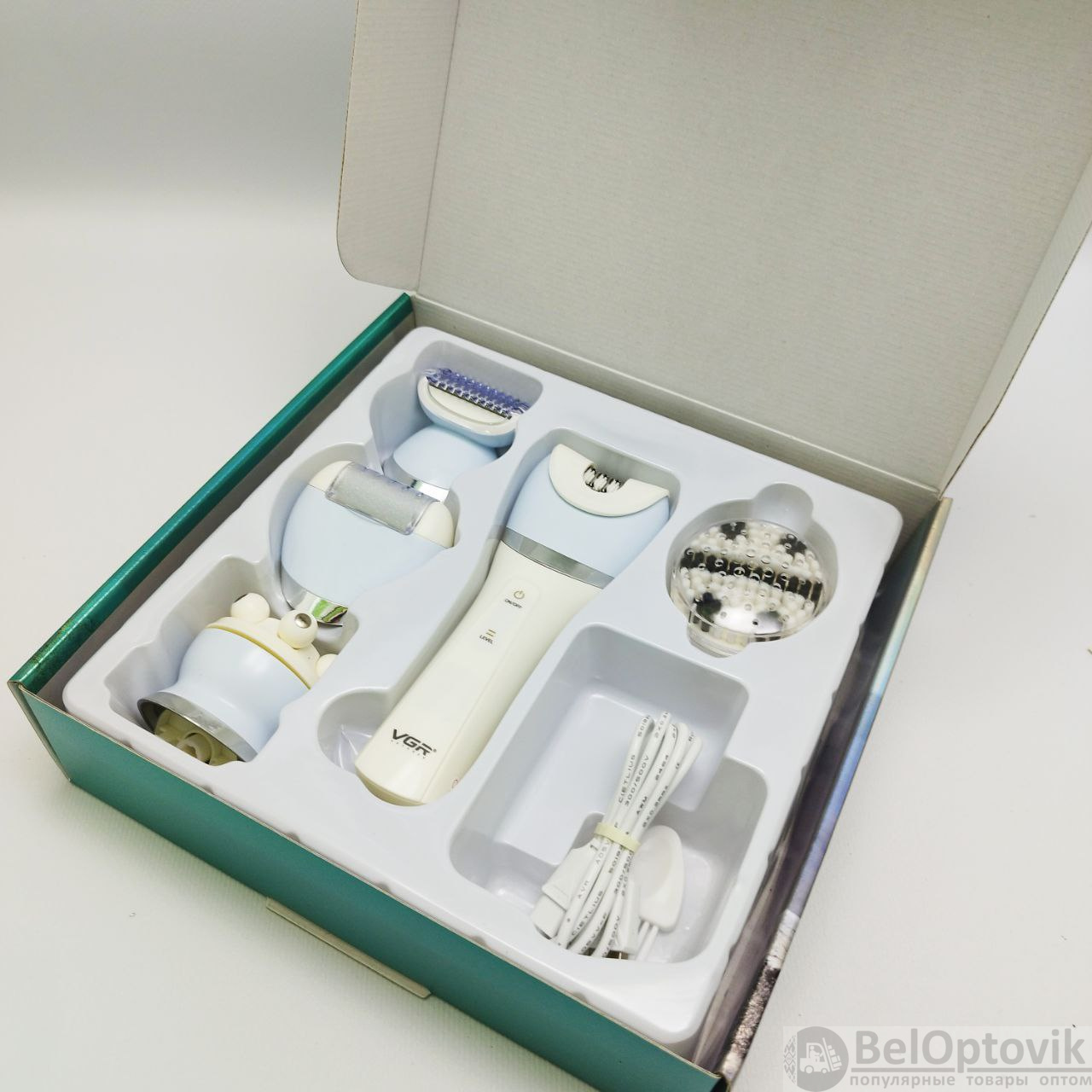 Профессиональный женский эпилятор VGR V-703 5 в 1 (5 насадок) обладает лучшей системой пилинга и массажа.