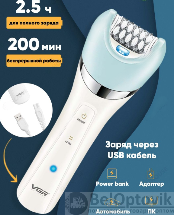 Купить Профессиональный женский эпилятор VGR V-703 VOYAGER PROFESSIONAL LADY CARE SET / водонепроницаемый триммер 5 в 1 (5 насадок) на нашем сайте можно ОПТОМ от 20 шт. или не менее 5, если Вы покупаете у нас и другие товары (сборный заказ).