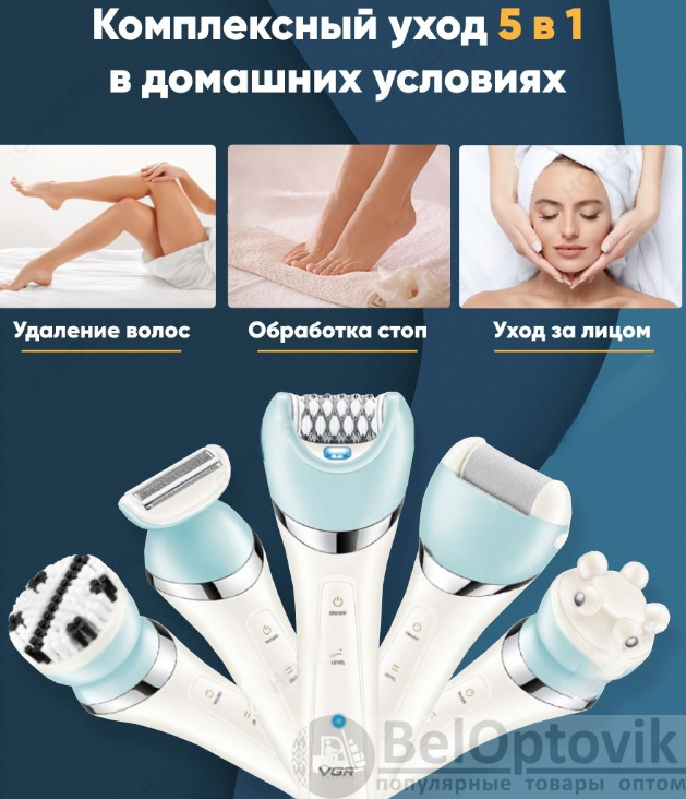 Выглядеть всегда обворожительно и при этом не тратить время на салон красоты? Женский эпилятор VGR V-703 5в1 поможет Вам в этом!