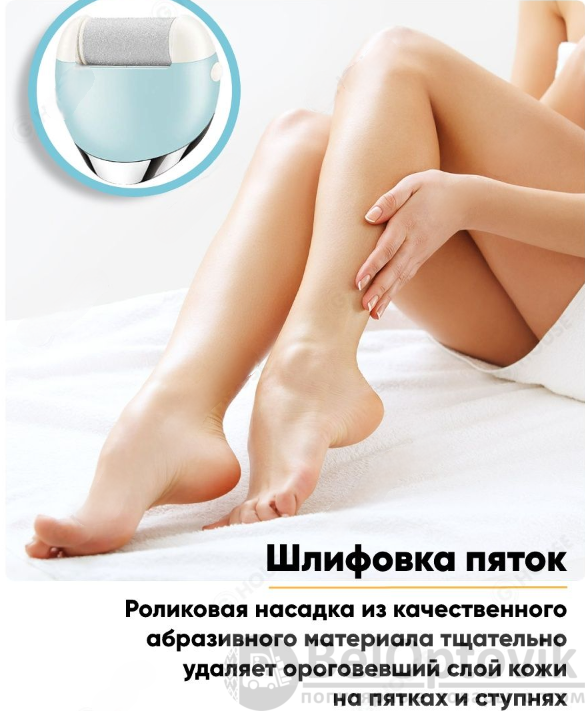 Имеются в комплекте следующие насадки: эпилятор, насадка-щетка для пилинга, насадка для массажа, насадка для бритья (бритва), насадка для огрубевшей кожи пяточек. Среди них стоит выделить насадку-щётку для глубокого пилинга, которая при помощи щетинок при регулярном использовании помогает исключить вероятность врастания волосков под поверхность кожи, и насадку для глубокого массажа, которая позволяет улучшить внешний вид кожи, стимулируя кровообращение и повышая регенерацию. Также, в комплект входит насадка-пемза для мягкого пилинга стоп, при помощи которой можно эффективно удалять ороговевшие клетки кожи, в то же время, стимулируя её восстановление.