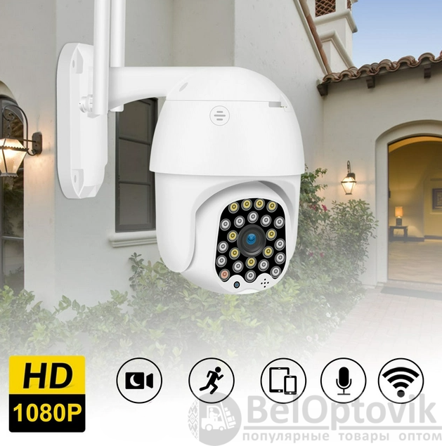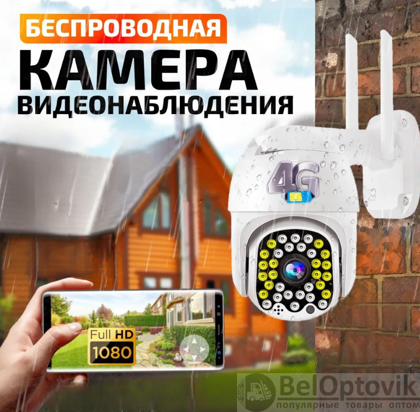 Уличная поворотная камера наблюдения IPCamera V32-4G (день/ночь, датчик движения проводной/беспроводной интернет через Sim- карту) — это современная полнофункциональная поворотная камера наблюдения в защищенном корпусе для улицы или для помещений. Может успешно использоваться для наблюдения за домом, подъездом, дачей, гаражом, двором, придомовой территории, детской площадкой и т.д. Обеспечивает ночную видеосъёмку. Имеет возможность подключения через Sim- карту местных операторов связи поддерживающих беспроводную передачу данных и возможность проводного подключения к интернет-сети через разъём RJ45 (10/100M). Видеозапись ведётся на карту памяти (micro SD, до 128 Гб) или в облачное хранилище (по выбору пользователя) в разрешении Full HD 1080p непрерывно либо короткими файлами при обнаружении движения PIR датчиком камеры.