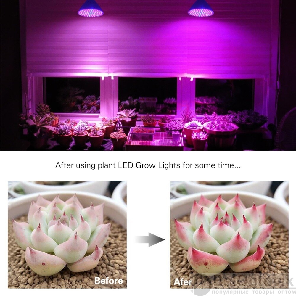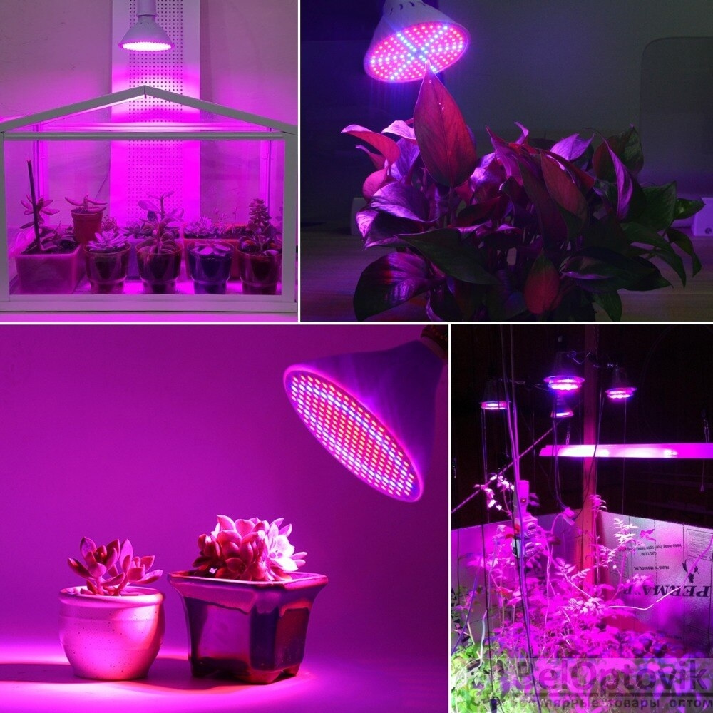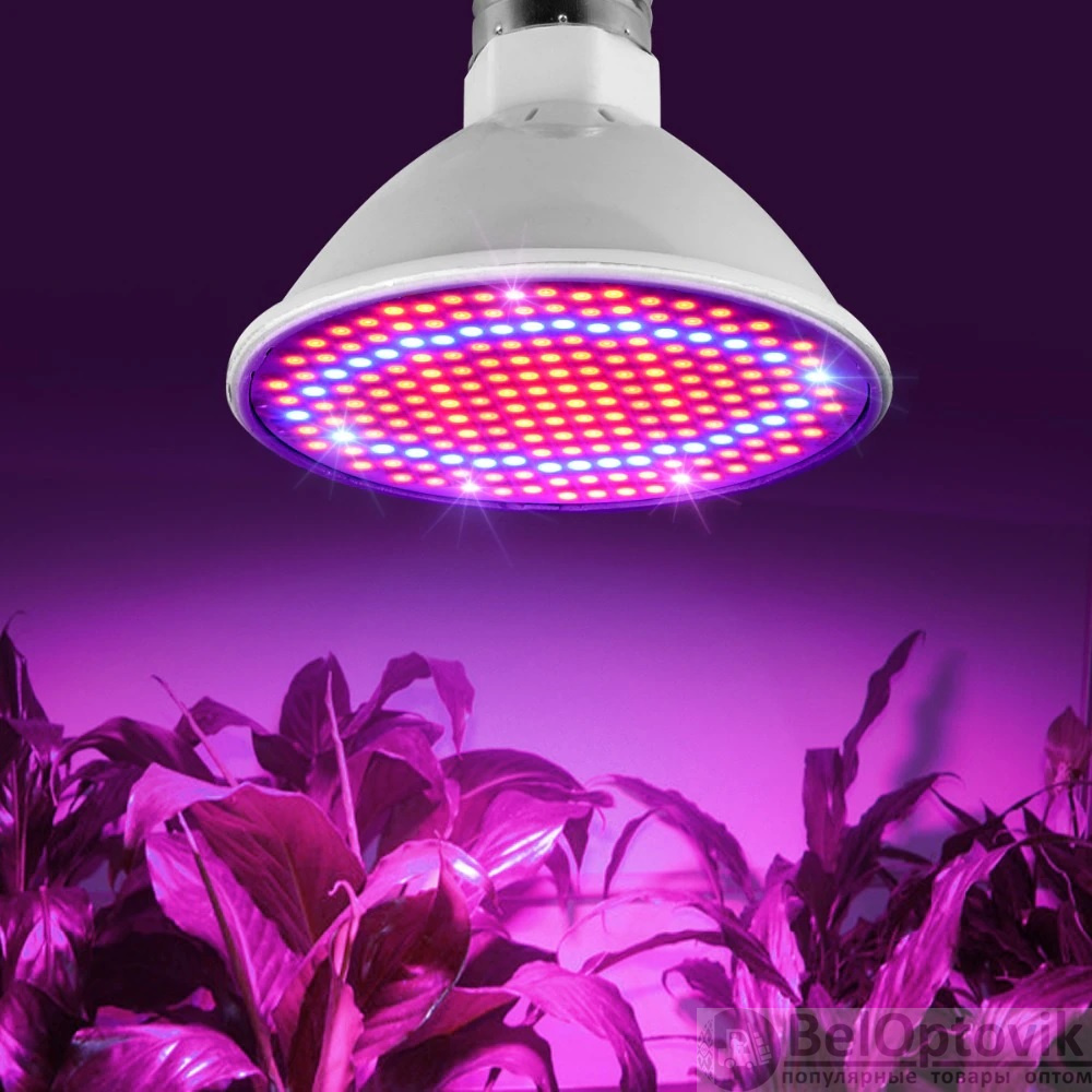 Что такое Светодиодная энергосберегающая фитолампа QRCP-00414, фиолетовый свет (цоколь Е27) 50 Вт, для поддержания роста растений, рассады, цветов, микрозелени