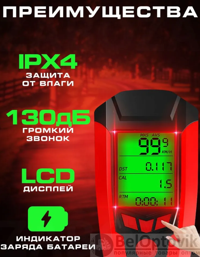 - Особенности: встроенный велокомпьютер, встроенный динамик, зарядка от USB, индикатор зарядки, чувствительность к вибрации (сигнализация);