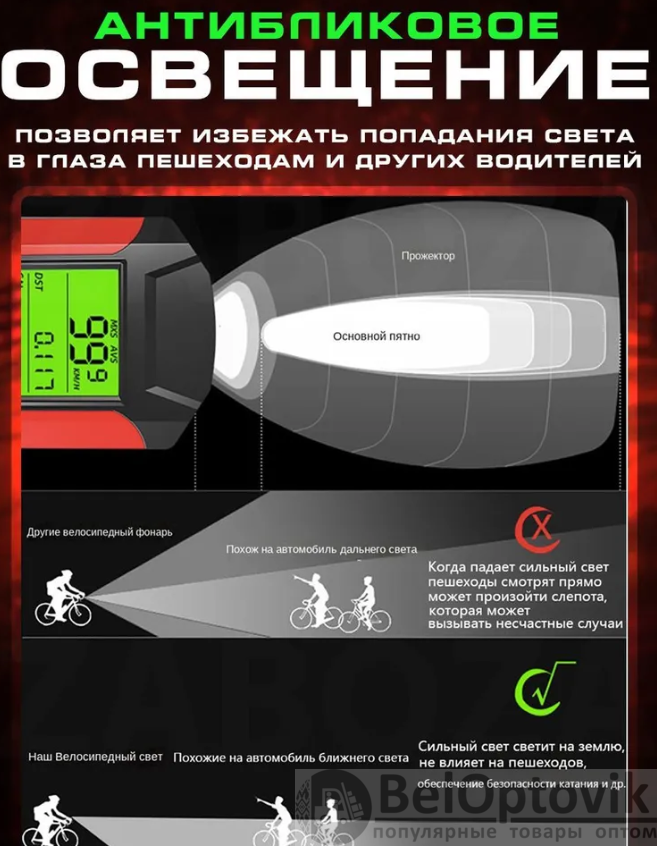 Почему купить умный велосипедный фонарь Bicycle Lamp Function King AS0808 (фара, сигнал, сигнализация, спидометр, дистанция и т.д.) оптом выгодно у нас: