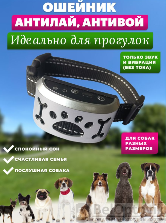 Купить Электронный ошейник для собак Антилай USB (без тока, 7 уровней чувствительности, 3 режима воздействия) на нашем сайте можно ОПТОМ от 20 шт. или меньше, если Вы покупаете у нас и другие товары (сборный заказ).