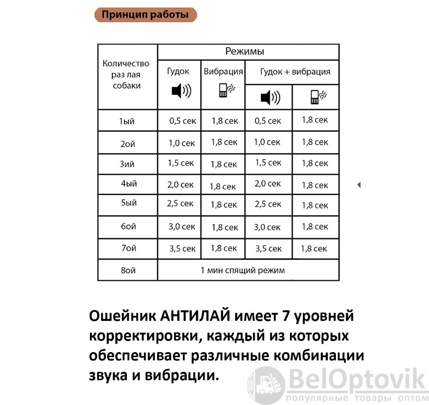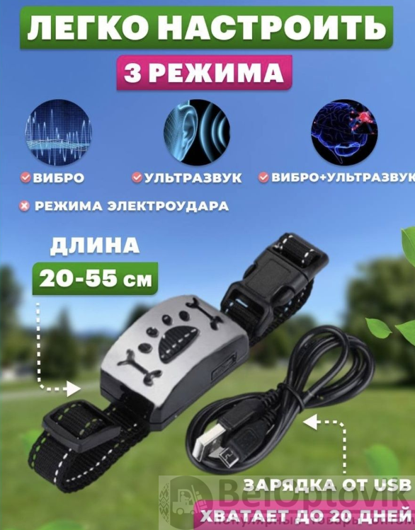 Электронный ошейник для собак Антилай USB (без тока, 7 уровней чувствительности, 3 режима воздействия) – 1 шт.;