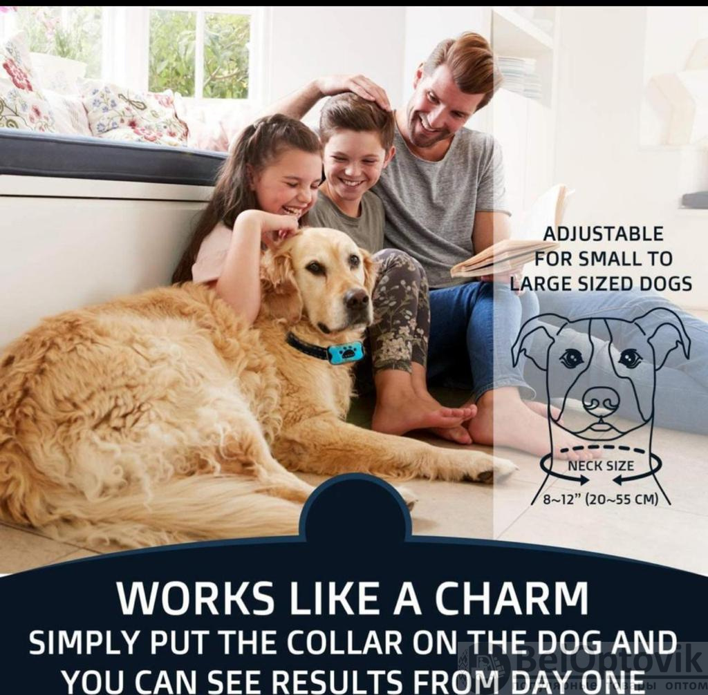 Данный ошейник против лая гуманный и безопасный, без режима удара электротоком, эффективно отучает питомца лаять с помощью звука и вибрации. Не причиняет боли и беспокойства. Прибор легко настраивается под характер и размер вашей собаки. Может использоваться даже когда собака остается дома одна. Имеет 7 уровней чувствительности и 3 режима воздействия: ультразвук, вибрация, ультразвук + вибрация. С каждым следующим лаем длительность сигналов увеличивается. Длина ошейника регулируется от 12 до 56 см, ошейник подходит для собак любых пород и размеров. Собаки быстро учатся - как только понимают, что могут избежать раздражающего писка и жужжания, они перестают лаять. Ошейник не требует замены батареек, работает на перезаряжаемом встроенном литиевом аккумуляторе, который держит заряд около 20 дней. Водонепроницаемый корпус защищен от дождя, снега, брызг воды, однако во время купания собаки ошейник лучше снимать. Режимы работы выбираются соответствующими кнопками управления и выбранный режим отображается с помощью светодиодной индикации.