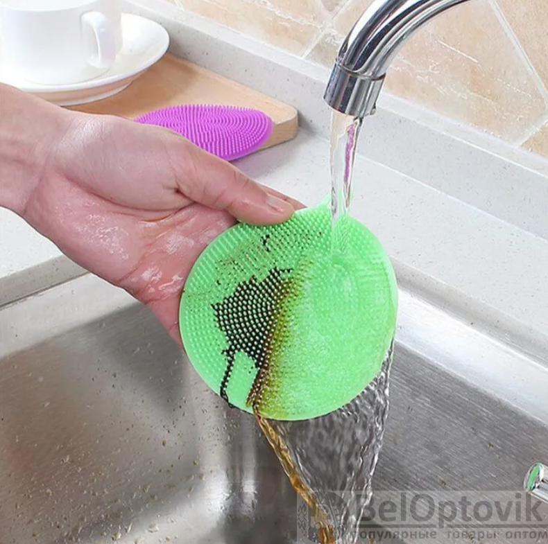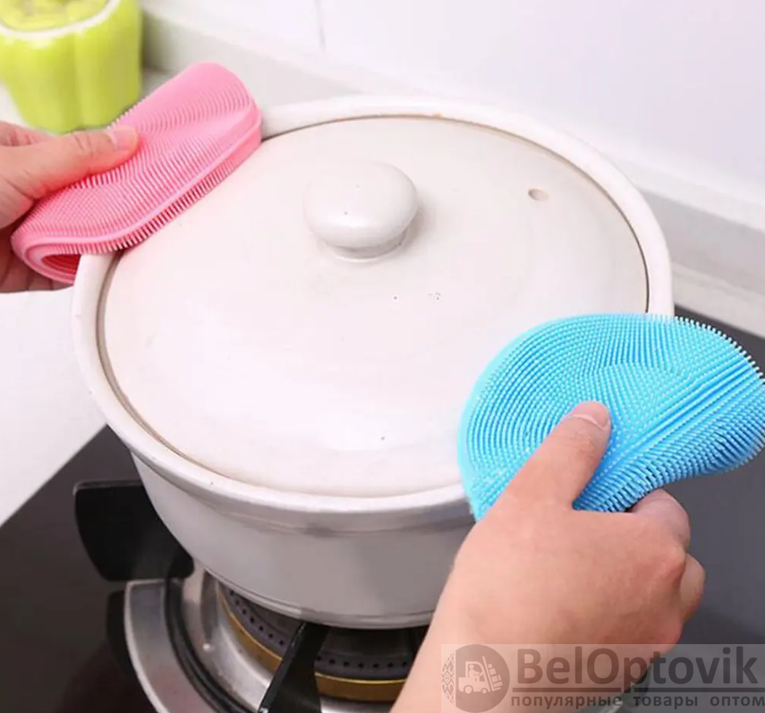 Губка силиконовая предназначена для устранения загрязнений с посуды, включая сковороды, казаны и кастрюли, а также с плиты, плитки, раковины и других поверхностей. Силиконовая губка для мытья имеет ворсинки, благодаря которым можно легко очистить посуду и отмыть даже присохшую пищу. Силиконовая губка выдерживают температуру до 230°С, поэтому её можно использовать как подставку под горячее для посуды с небольшим диаметром дна. Энтузиасты также используют силиконовую губку-мочалку для сбора шерсти, ниток и волос с одежды, в том числе при стирке в стиральной машине.