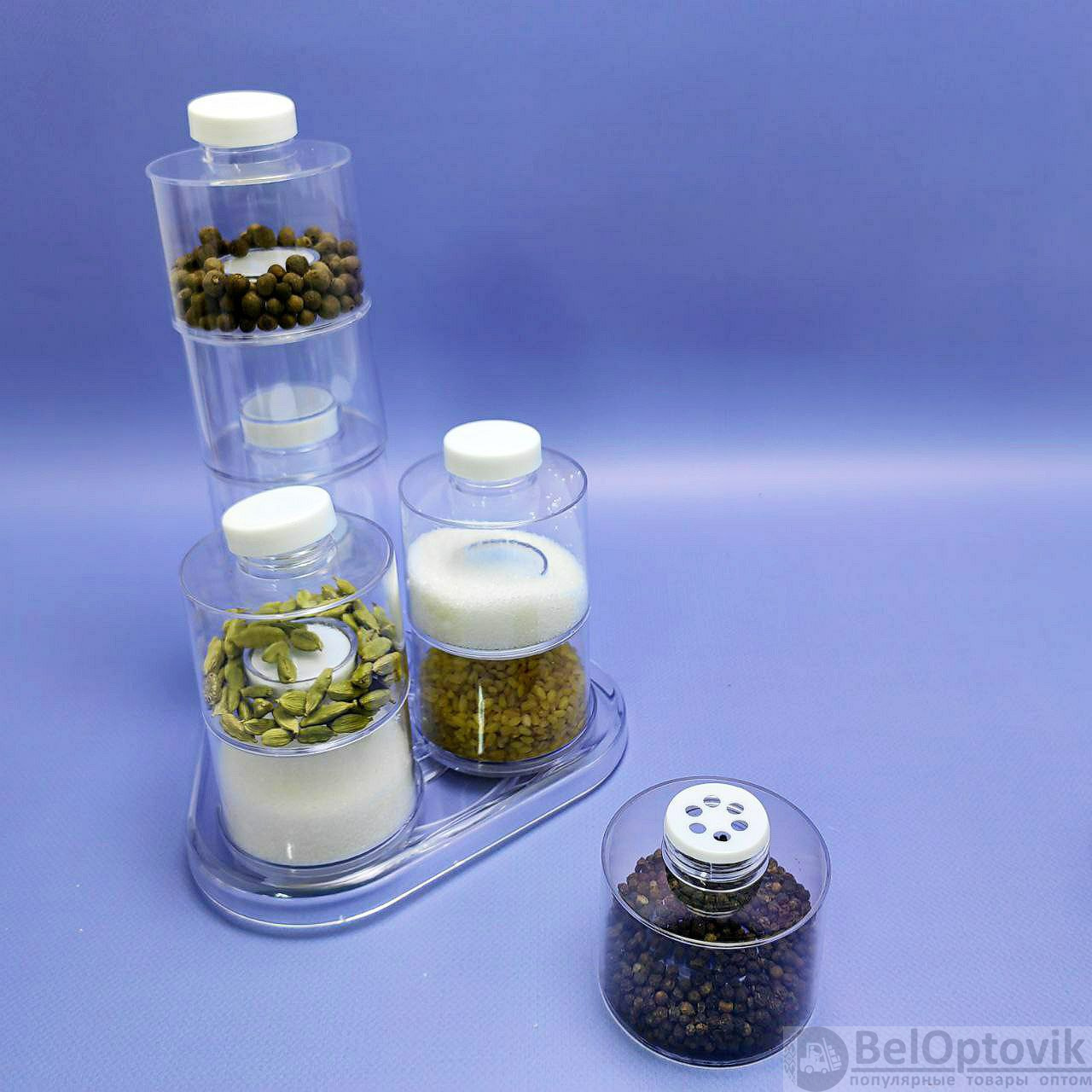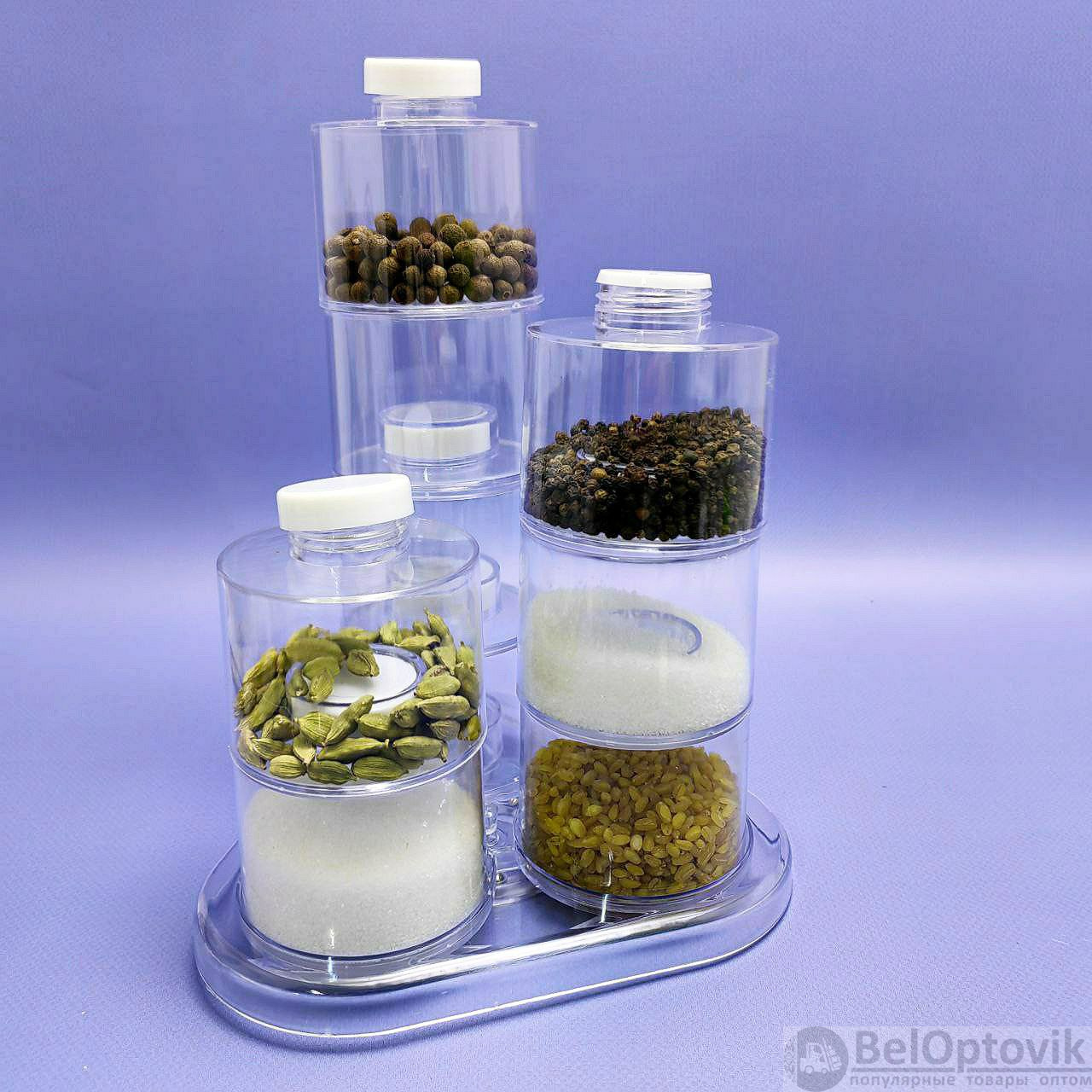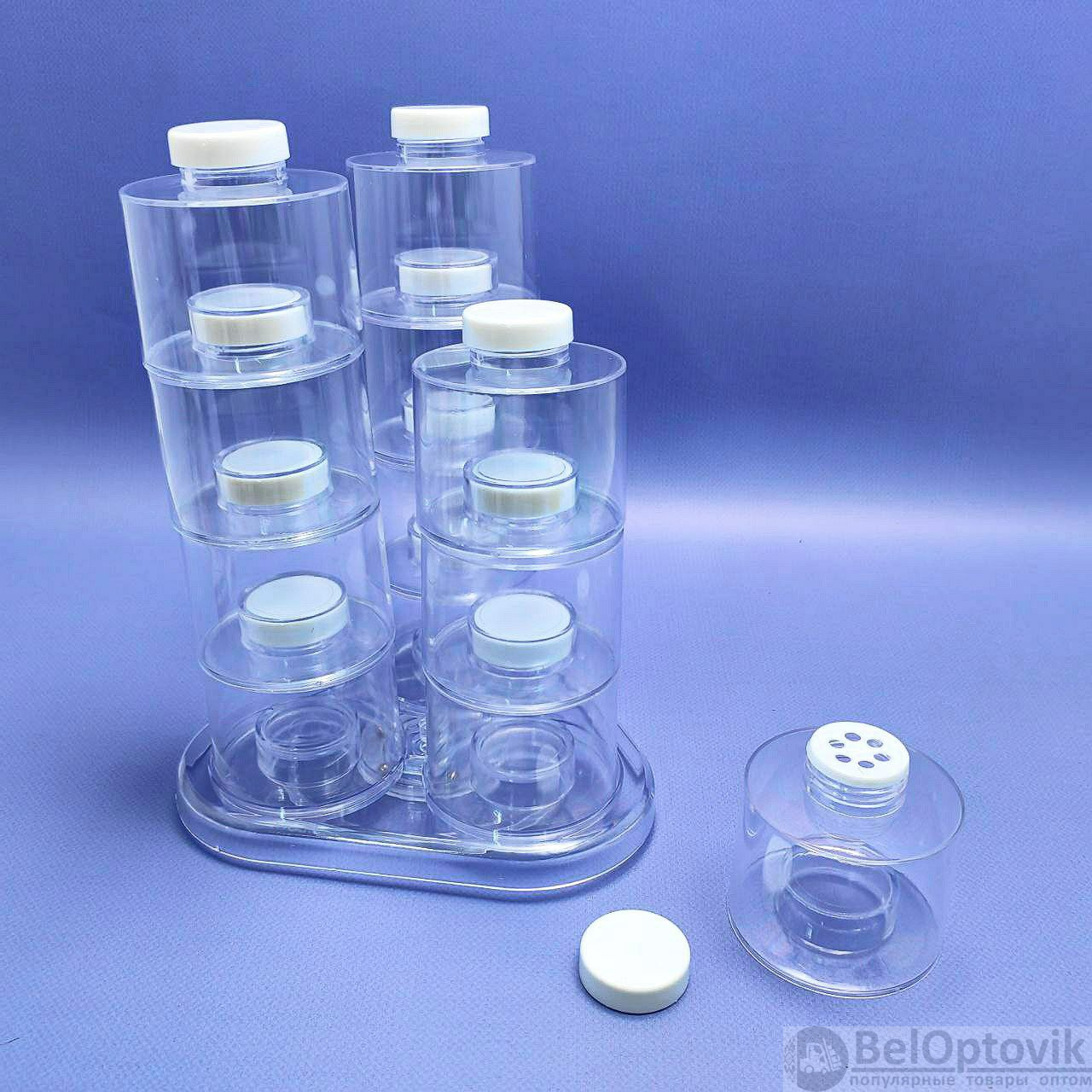 Цвет: прозрачные баночки, белый верх баночек, прозрачная подставка;