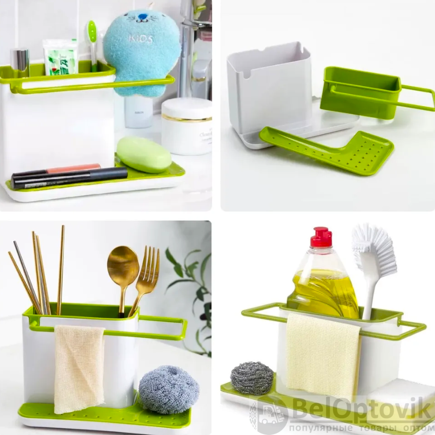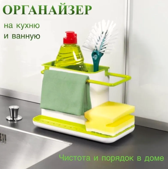 Органайзер для раковины 3в1 Daily Use / Подставка - держатель для губок и моющего средства – 1 шт.;