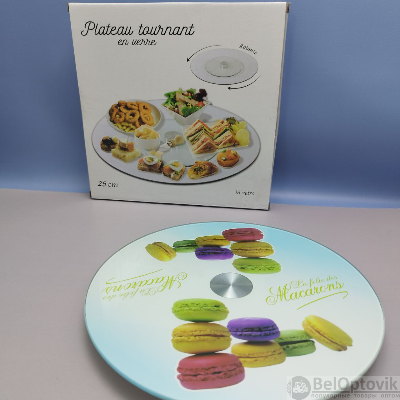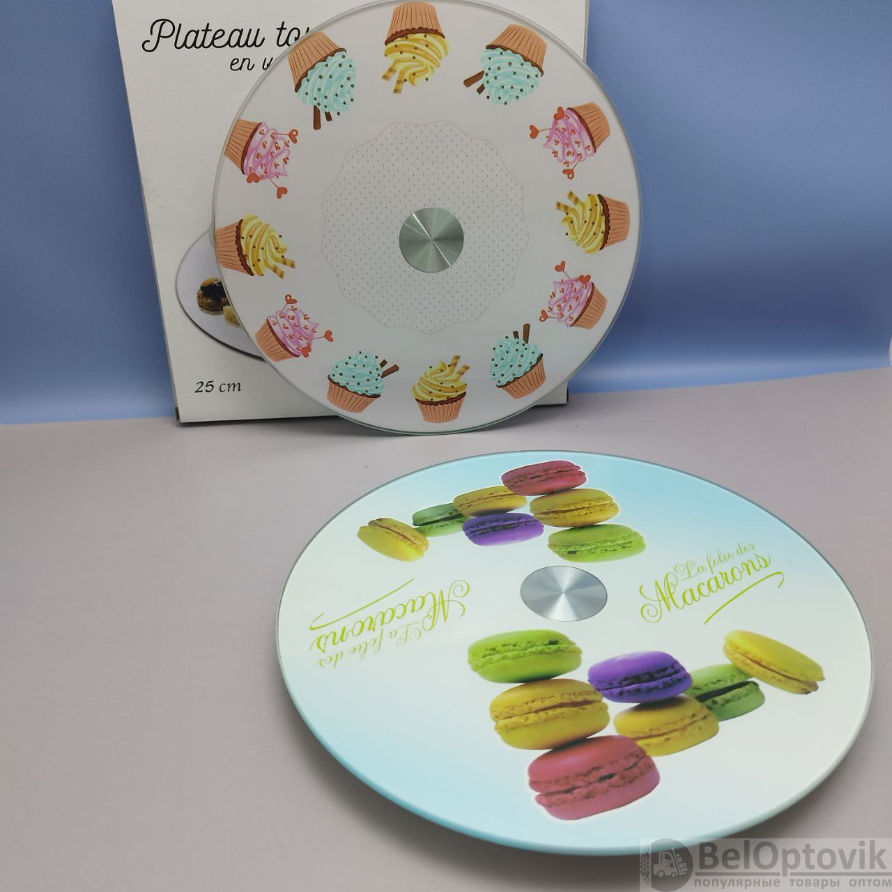 Купить Подставка для торта / Поворотный стол для кондитера на стеклянном крутящемся диске, 25 см., Plateau tournant en werre цвет MIX на нашем сайте можно ОПТОМ от 20 шт. или не менее 5, если Вы покупаете у нас и другие товары (сборный заказ).