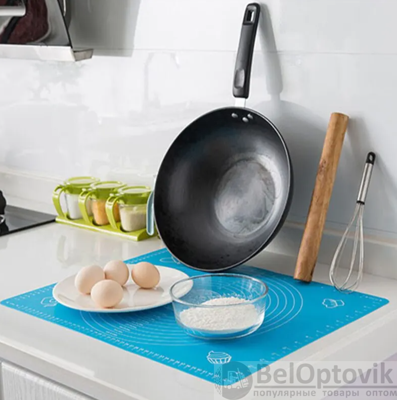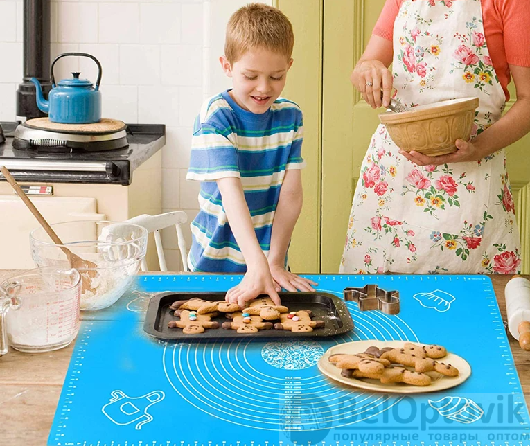 Коврик силиконовый для раскатывания теста незаменимый помощник современной хозяйки. Он позволит Вам без особого труда достигнуть нужного результата с толщиной теста и сохранит чистоту кухонного стола. Кроме этого силиконовый коврик можно использовать в духовке для выпекания и запекания вместо пергаментной бумаги. Коврик изготовлен из безопасного пищевого силикона, который можно использовать при температурах от -25 °С до +230 °С. Материал не содержит вредных веществ и не выделяет запаха при высоких температурах. При использовании коврика для раскатки теста, благодаря свойствам силикона, Вы сможете избежать прилипания теста к поверхности с минимальным использованием муки. Тесто не будет скользить и рваться.