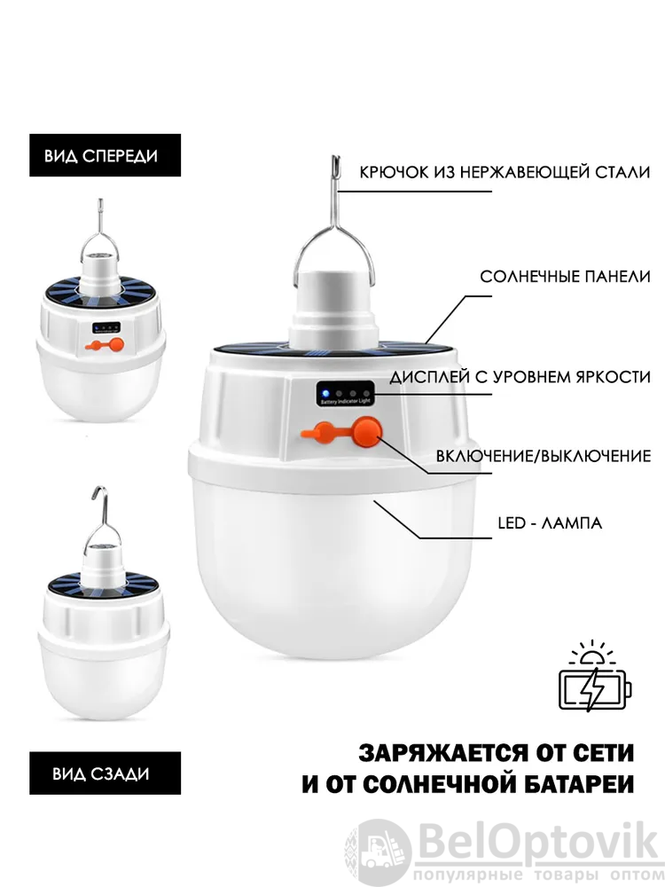 Почему купить кемпинговый подвесной фонарь Solar emergency charging lamp USB и солнечные батареи (5 режимов работы) оптом выгодно у насГарантия низких цен, напрямую от производителя