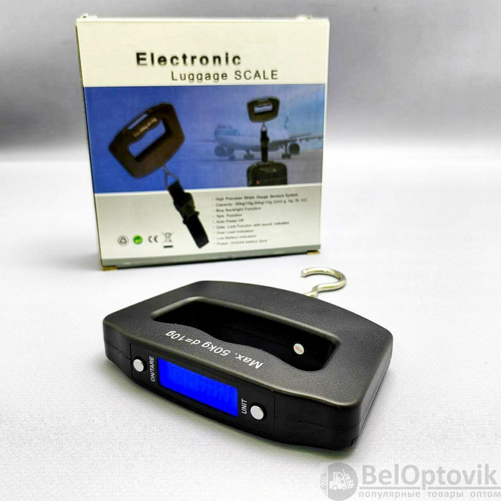 Багажные весы (безмен электронный) - находка для человека, часто путешествующего самолётом. Не секрет, что масса провозимого на самолёт багажа строго ограничена, а перевес, лишь, одного места на несколько килограмм может стоить уйму потерянного времени нервов и денег. Багажные весы (безмен электронный) сохранят Вам нервы и деньги и позволят в любой момент проконтролировать вес Ваших чемоданов. Багажные весы специально созданы для взвешивания больших сумок и чемоданов, поэтому они имеют специальное крепление для такого рода грузов, для того чтобы взвешивать чемоданы было легко и удобно. Весы электронные Electronic Luggage Scale с максимальным пределом взвешивания до 50 кг. Прекрасно подойдёт для покупок и проверок точного веса в магазинах, взвешивания багажа в аэропортах, взвешивания в домашних условиях различного рода овощей и фруктов. Экран имеет синюю подсветку, что облегчает работу в затемнённых помещениях!