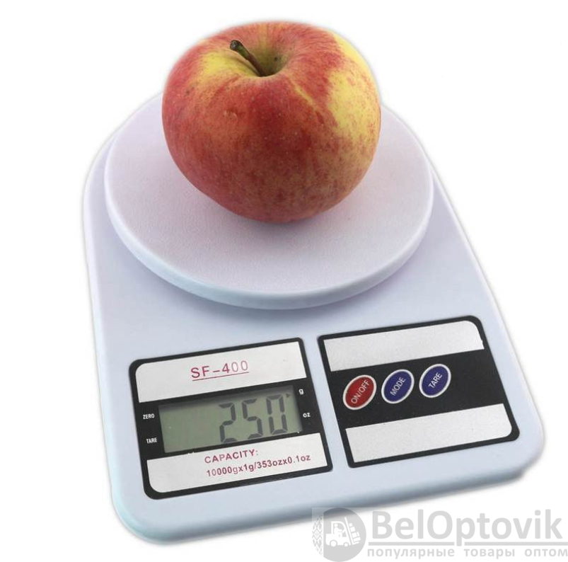 Электронные кухонные весы Electronic Kitchen Scale SF-400 - небольшие кухонные весы с максимальным пределом взвешивания 10 кг. Идеальны для домашнего использования. Не займут много места на кухонной полке. Устройство прекрасно подходит для определения веса любых продуктов - ягод, фруктов, овощей, конфет, мяса, а также сахара, муки, гречки, риса и прочих сыпучих продуктов. В зависимости от характера предметов и веществ, для удобства взвешивания, модель имеет функцию выбора меры веса в граммах либо унциях (переключаются кнопкой MODE).Также устройство может запоминать вес тары (в качестве мерной чаши можно использовать абсолютно любую подходящую по размеру ёмкость).