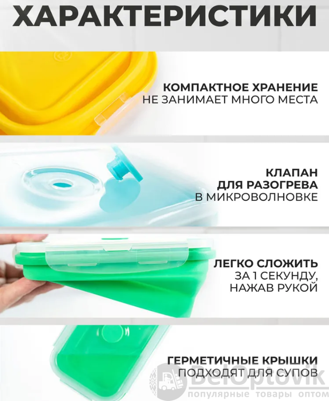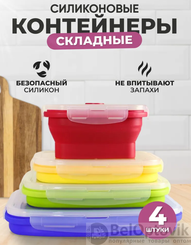 Почему купить Набор прямоугольных силиконовых контейнеров 4 шт. оптом выгодно у нас: