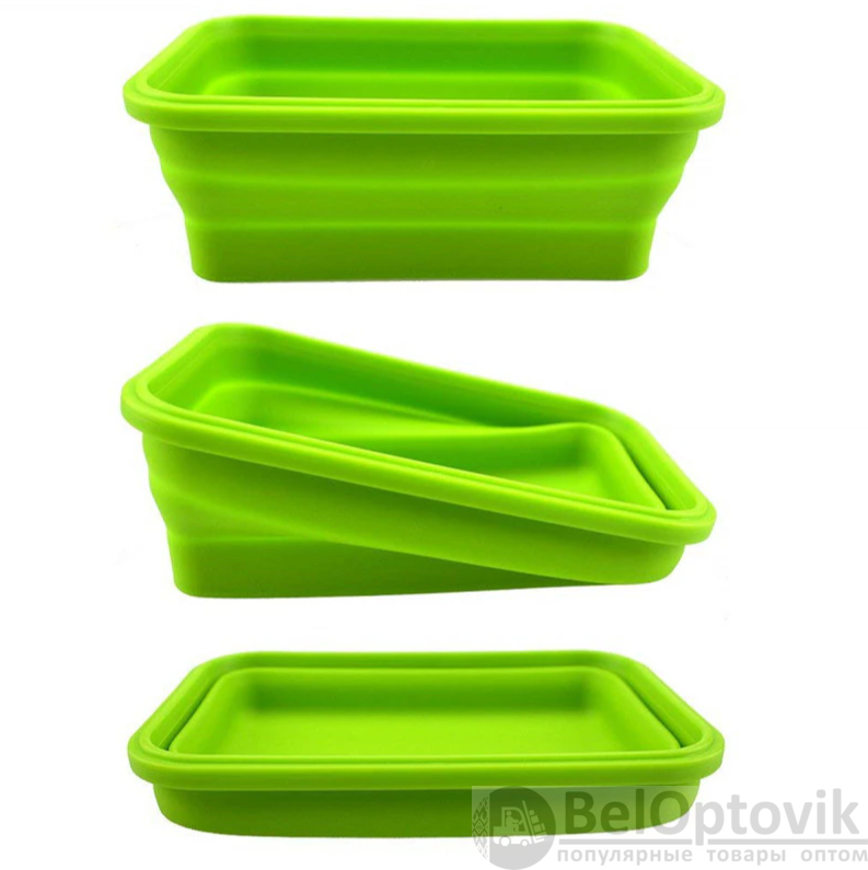 Практичные и удобные ланч-бокс для повседневного использования, предназначен для переноски и хранения пищевых продуктов. Это силиконовые складное контейнера, которые после обеда не займут много места и поместятся даже в женский клатч. Высота контейнера уменьшается в три раза при складывании. Силикон мягкий, а кромка верхней части контейнера жесткая. Пластиковая крышка на защелках надежно закрывает ланч бокс с четырех сторон.
