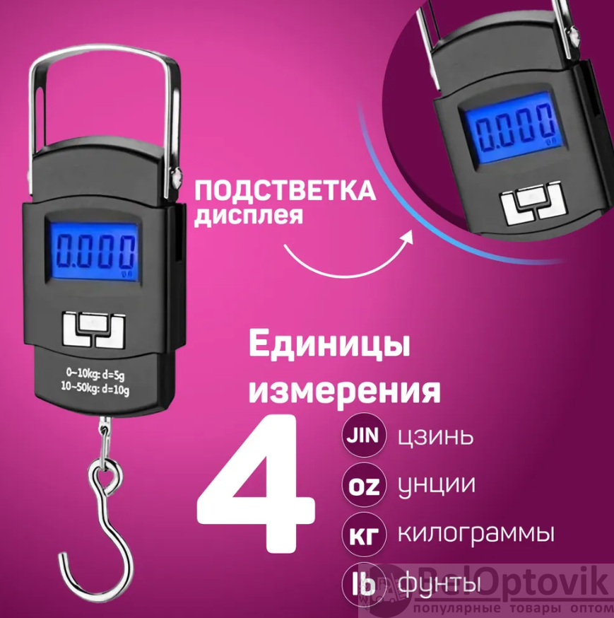 Электронные весы - кантер Portable Electronic Scale WH-A08 до 50 кг. / Карманные весы - безмен черные– 1 шт.;
