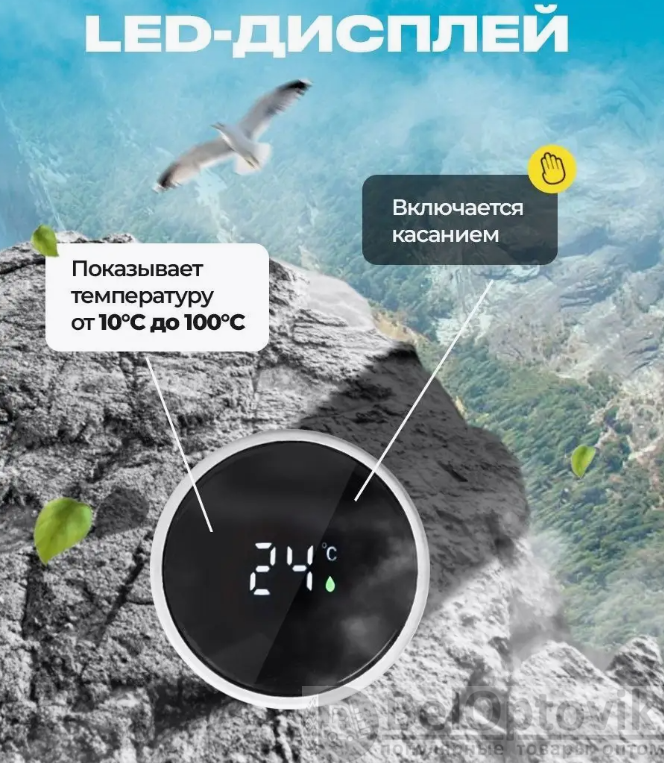 Термос с индикатором температуры и ситечком, 500 мл.- это умный термос с дисплеем и ситечком. Является превосходным подарком, сувениром для людей, любящим путешествия и красивые вещи. Led-дисплей отображает температуру воды- Вы сможете определить оптимальную температуру для употребления ваших любимых напитков.