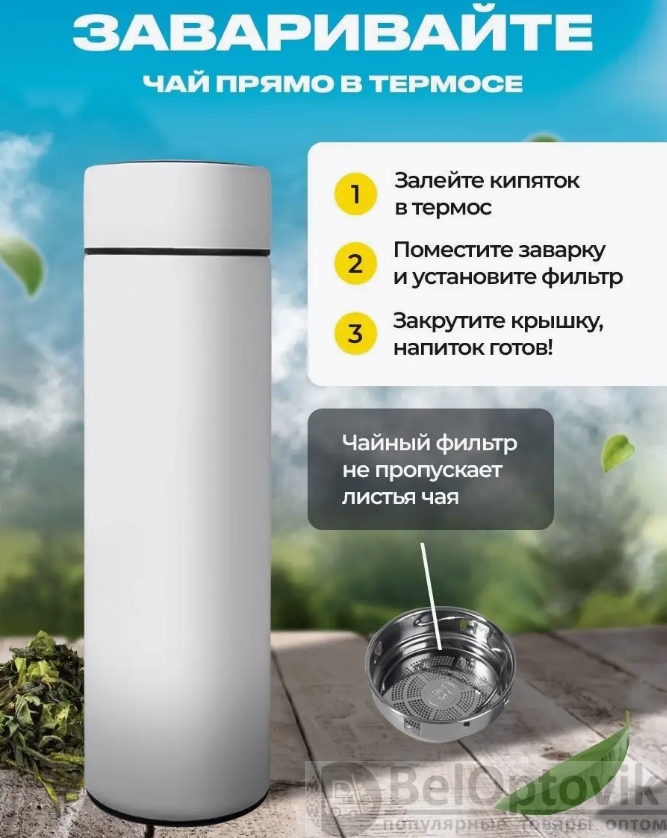 Почему купить Термос с индикатором температуры и ситечком, 500 мл. / Белый, матовый оптом выгодно у нас:· Гарантия низких цен, напрямую от производителя