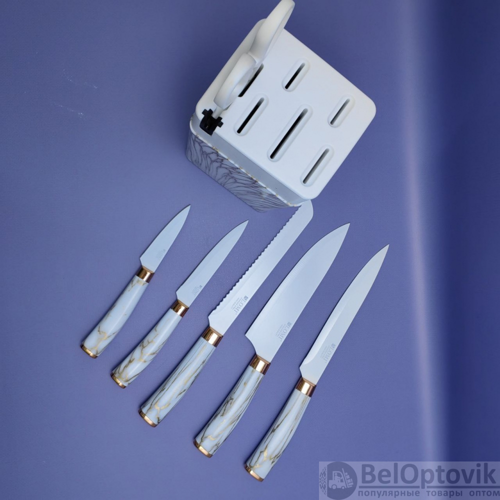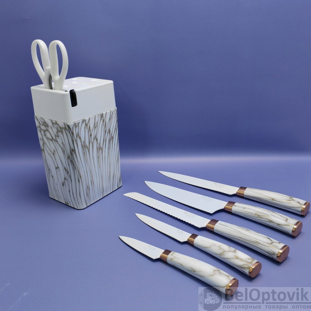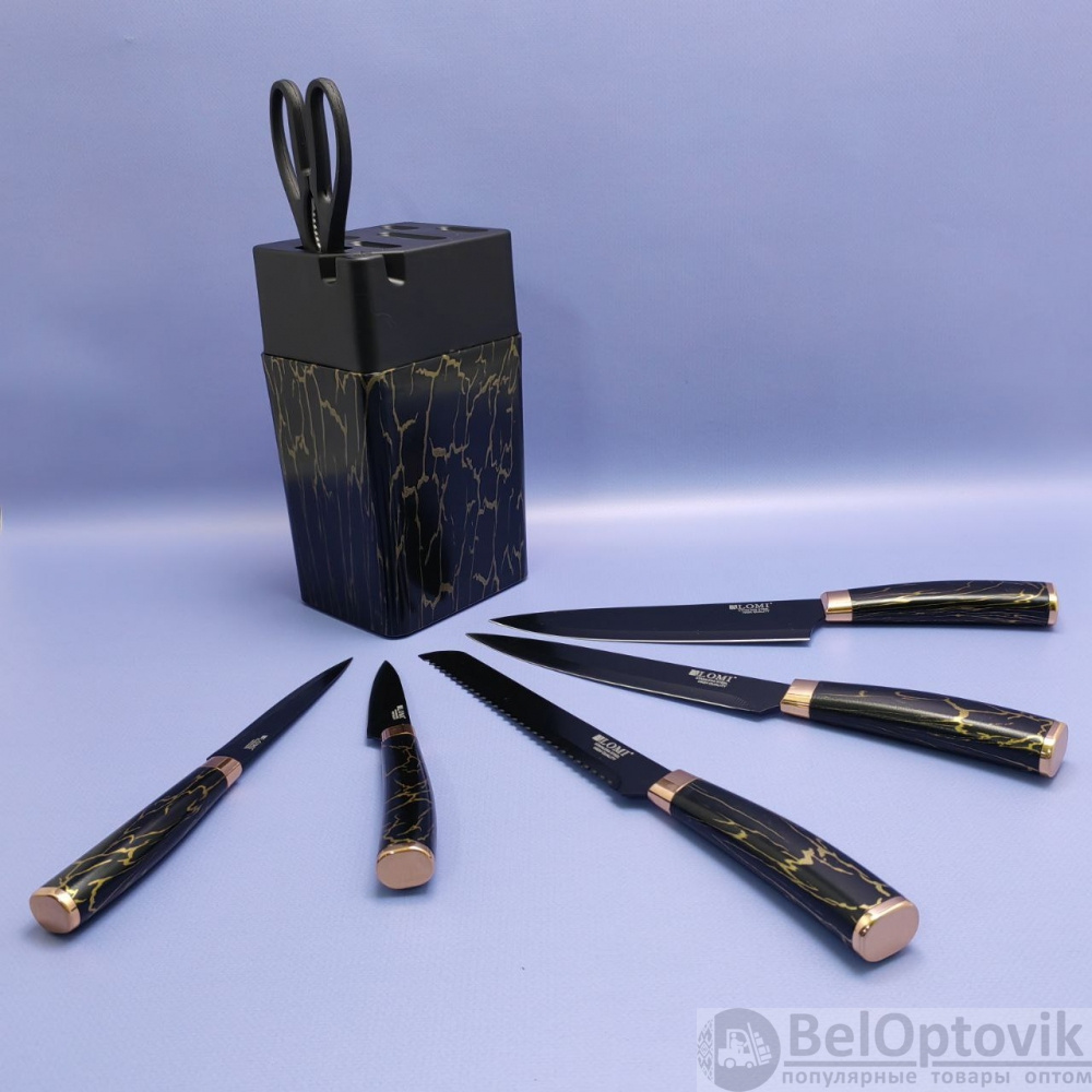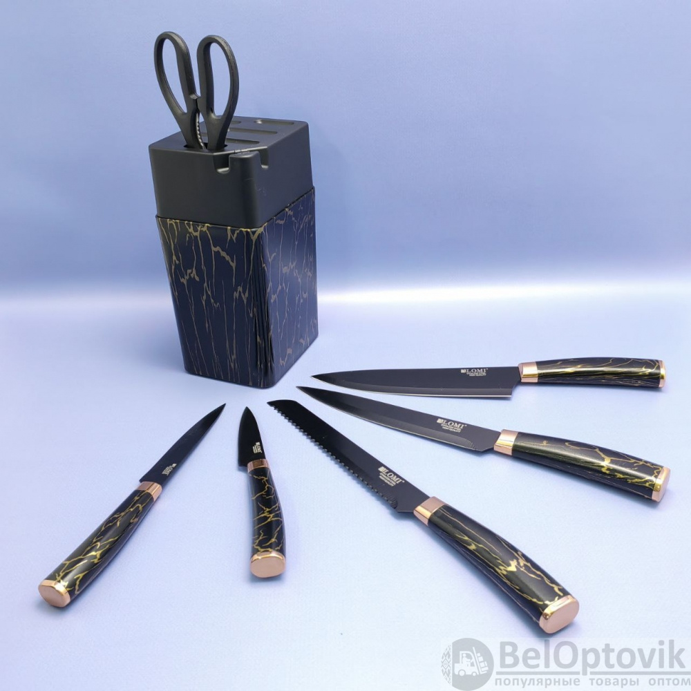 Купить Набор кухонных ножей из нержавеющей стали 7 предметов Alomi на подставке / Подарочная упаковка на нашем сайте можно ОПТОМ от 20 шт. или меньше, если Вы покупаете у нас и другие товары (сборный заказ).