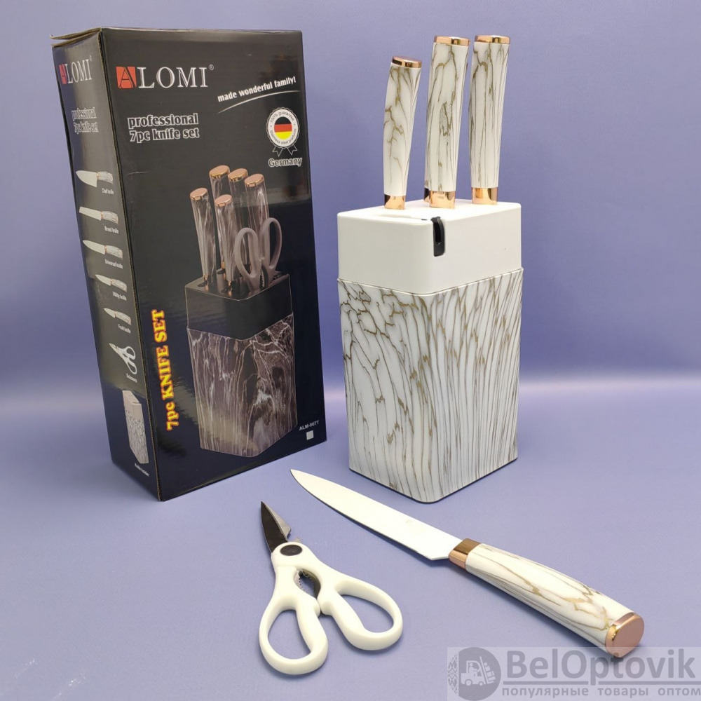 Почему купить Набор кухонных ножей из нержавеющей стали 7 предметов Alomi на подставке / Подарочная упаковка оптом выгодно у нас:· Гарантия низких цен, напрямую от производителя