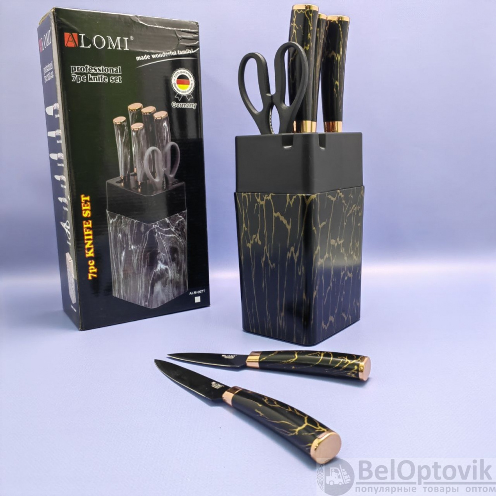 Набор кухонных ножей из нержавеющей стали 7 предметов Alomi на подставке / Подарочная упаковка- 1 шт.;