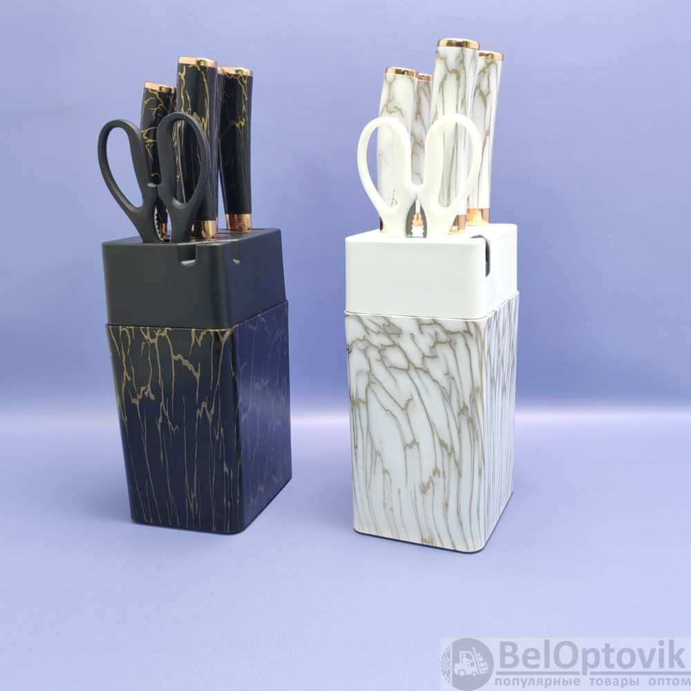 - Количество: 5 ножей,1 ножницы, 1 подставка;