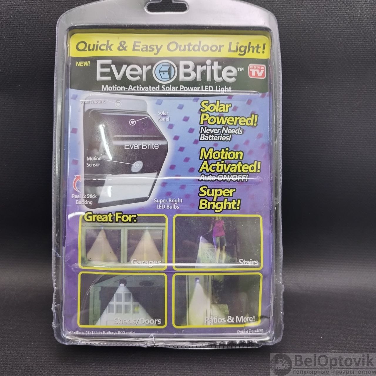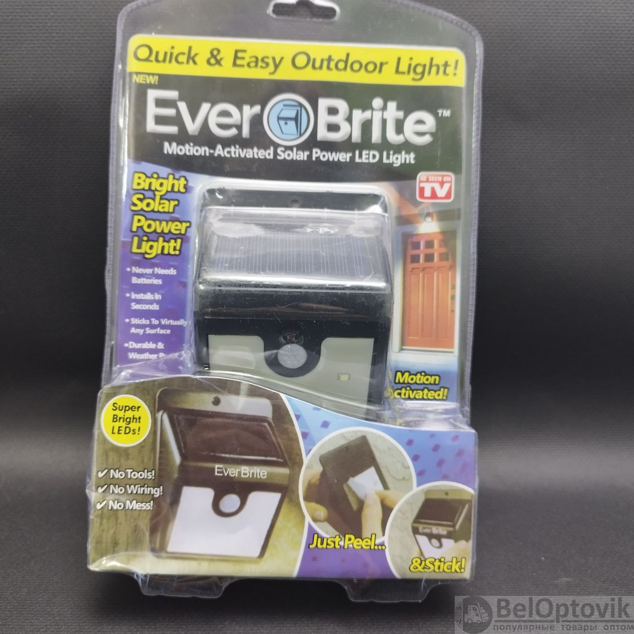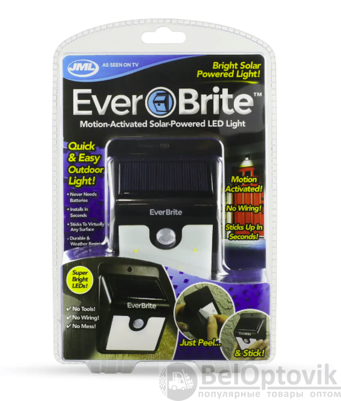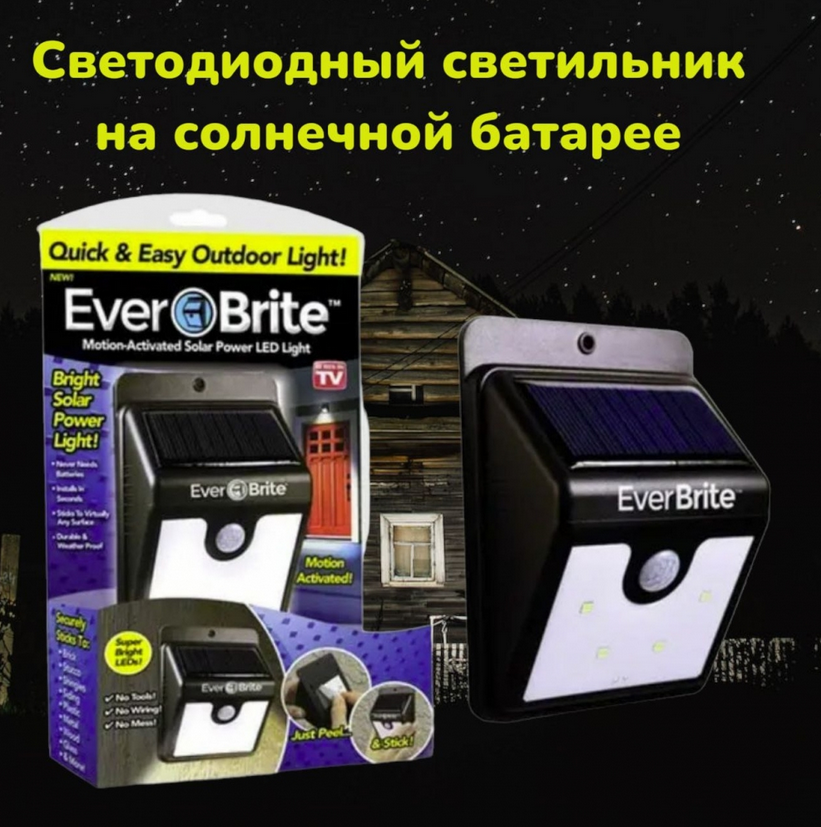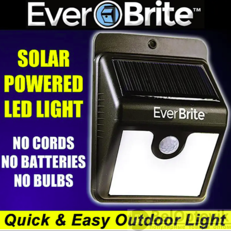 Купить уличный светодиодный светильник на солнечной батарее с датчиком движения Everbrite на нашем сайте можно ОПТОМ от 20 шт. или менее, если Вы покупаете у нас и другие товары (сборный заказ)