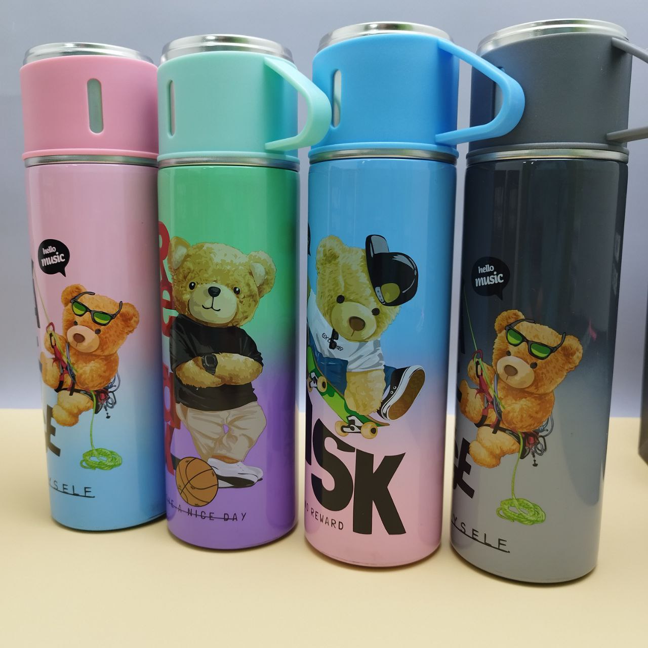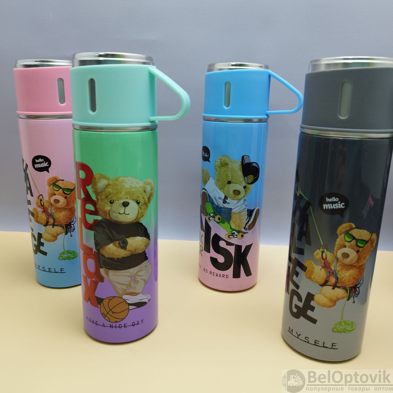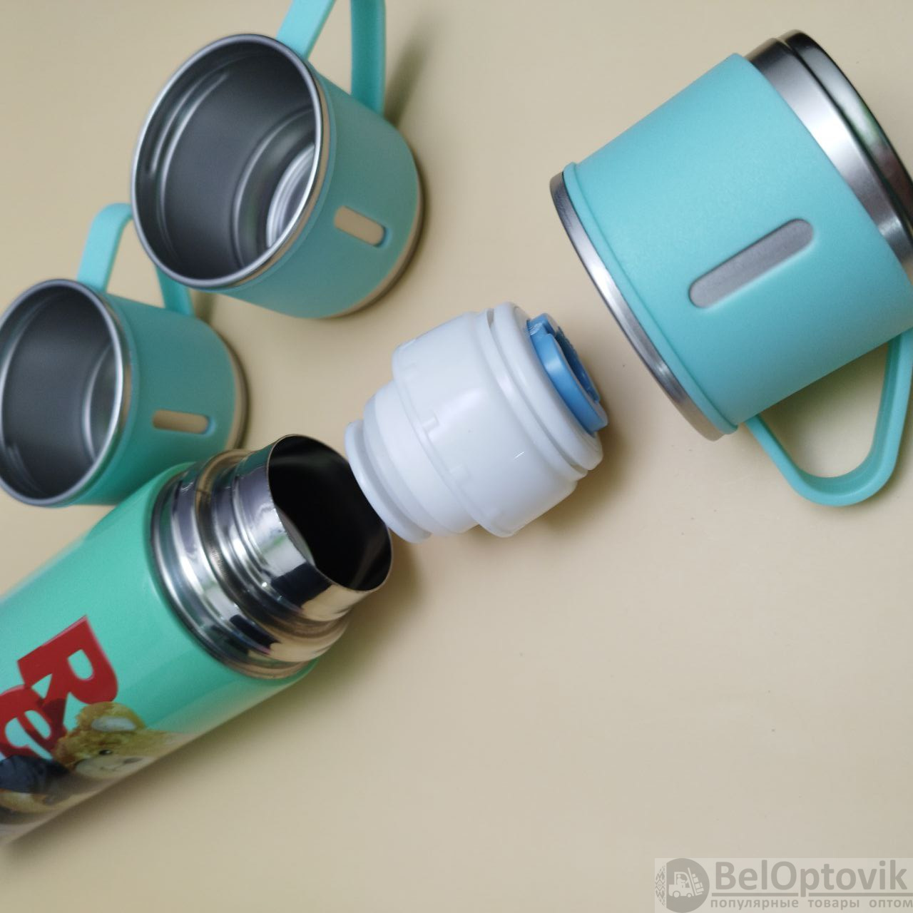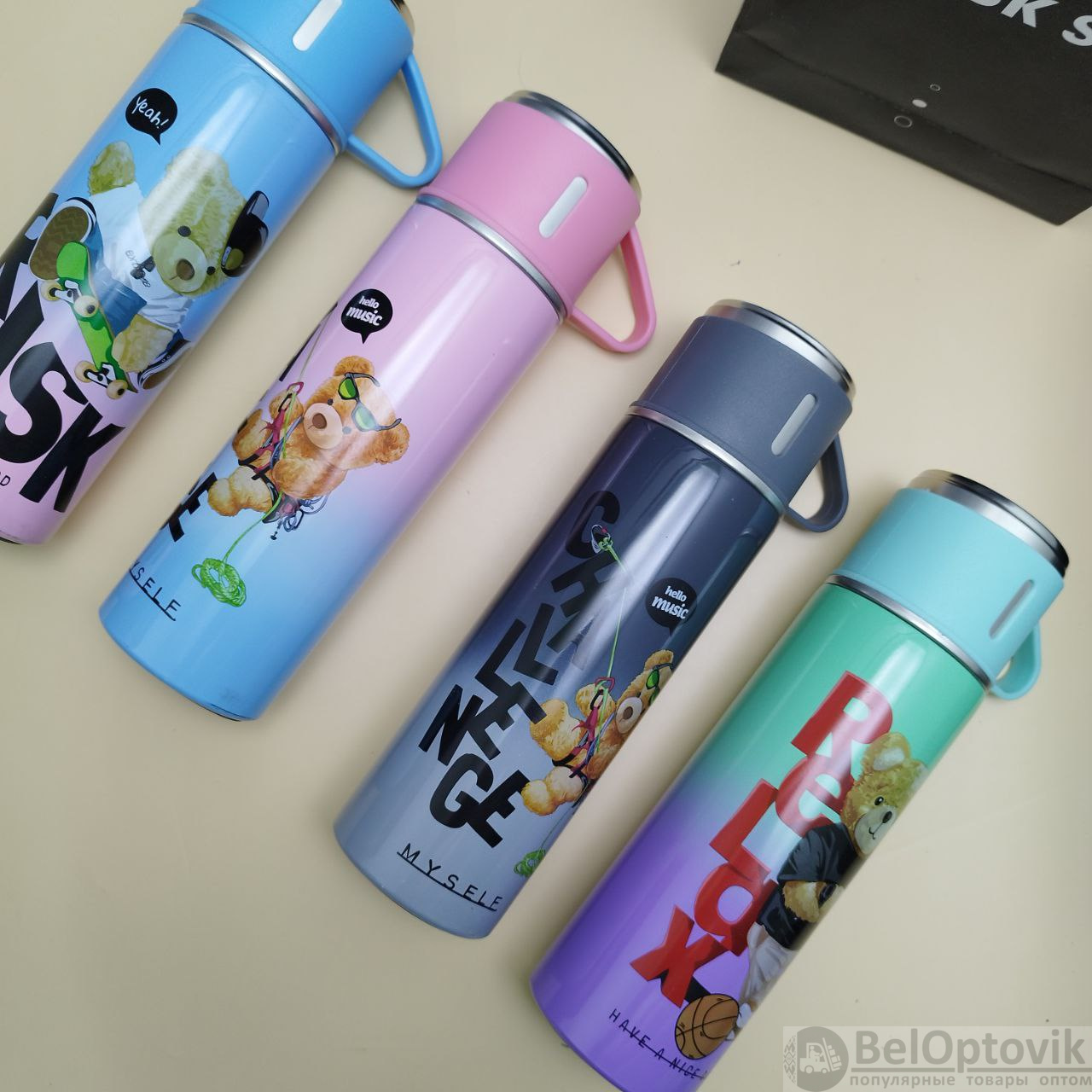 Купить Термос "Мишка" с тремя кружками Vacuum set / Подарочный набор с вакуумной изоляцией / 500 мл. на нашем сайте можно ОПТОМ от 20 шт. или не менее 5, если Вы покупаете у нас и другие товары (сборный заказ).