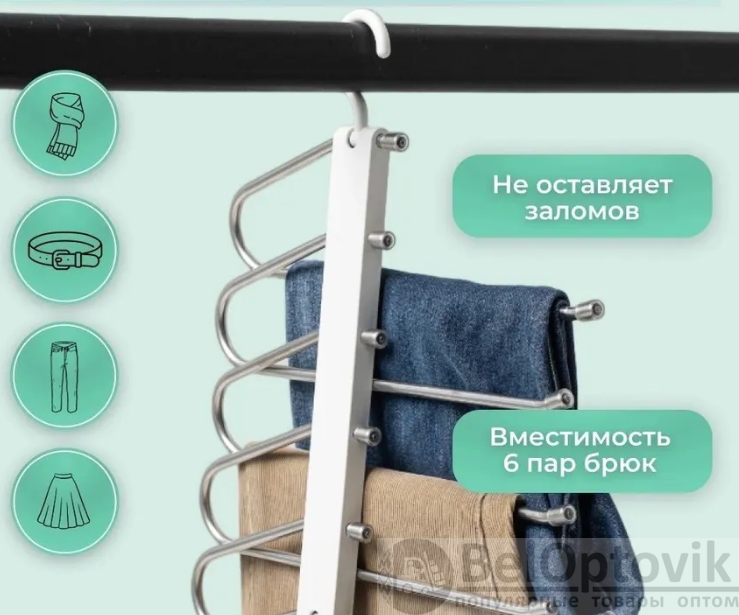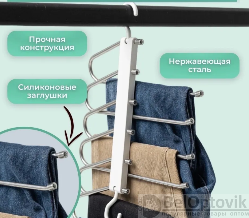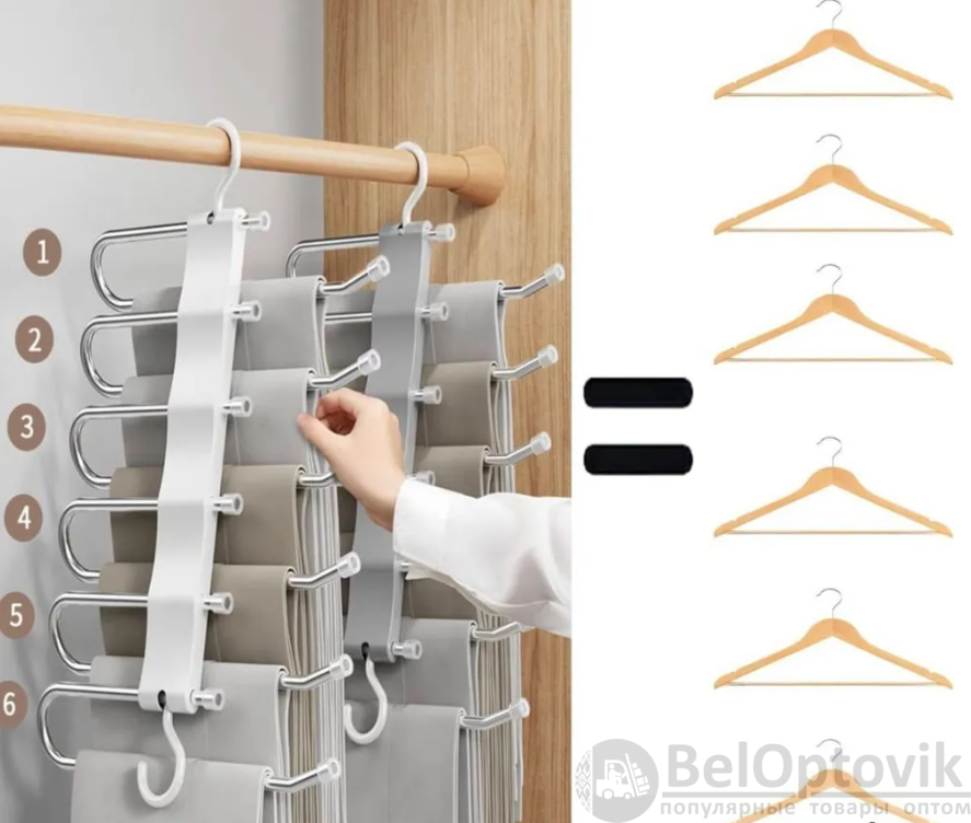 Купить Многоуровневая вешалка - органайзер для брюк, юбок 5в1 Trouser Rack на нашем сайте можно ОПТОМ от 20 шт. или меньше, если Вы покупаете у нас и другие товары (сборный заказ).