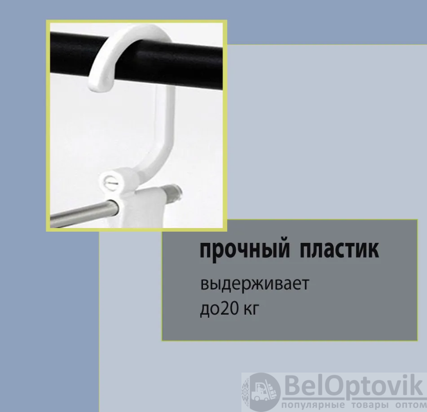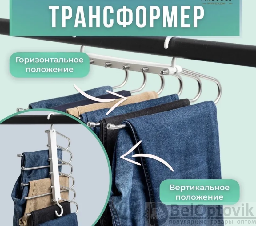 Вмещает до 5 пар брюк, и позволяет расположить вещи как в вертикальном, так и в горизонтальном положении. Подвесьте вешалку горизонтально на штангу шкафа за оба крючка или снимите один из крючков. Вешалка для одежды имеет удобный изгиб и фиксаторы-колпачки на краях каждой вешалки для одежды позволяют одежде не съезжать. Благодаря размерам удобно брать в поездки и дорогу.