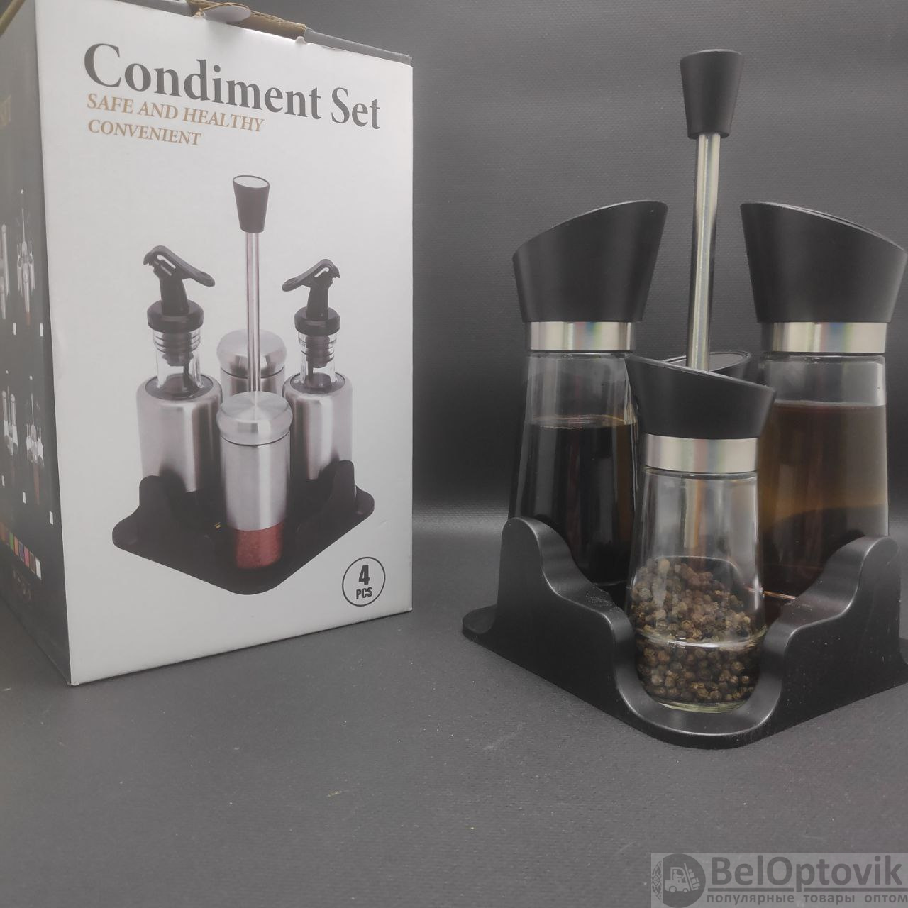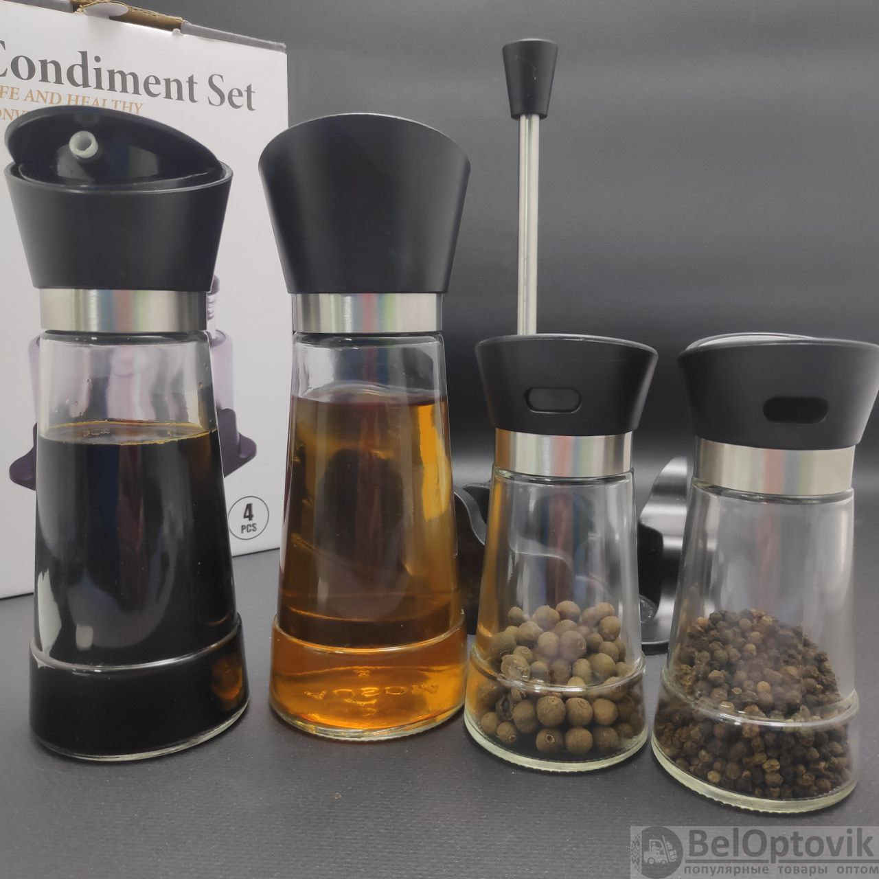 Набор для специй, соусов, масла 4в1 Condiment Set на подставке – 1 шт.;