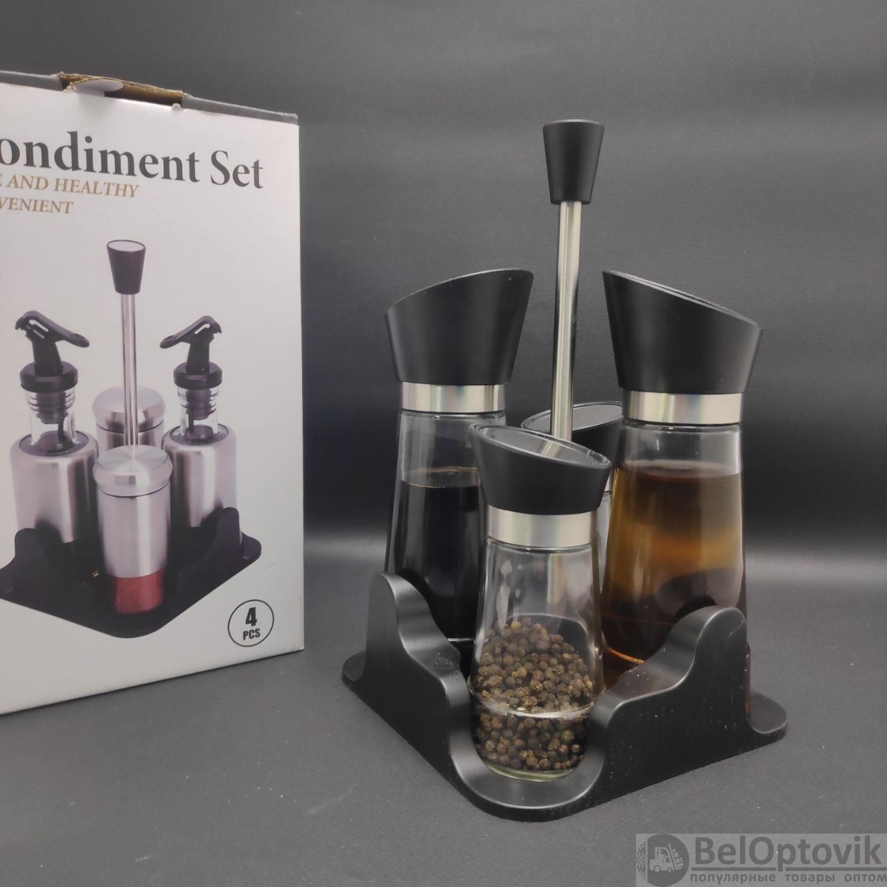 Купить Набор для специй, соусов, масла 4в1 Condiment Set на подставке на нашем сайте можно ОПТОМ от 20 шт. или не менее 5, если Вы покупаете у нас и другие товары (сборный заказ).