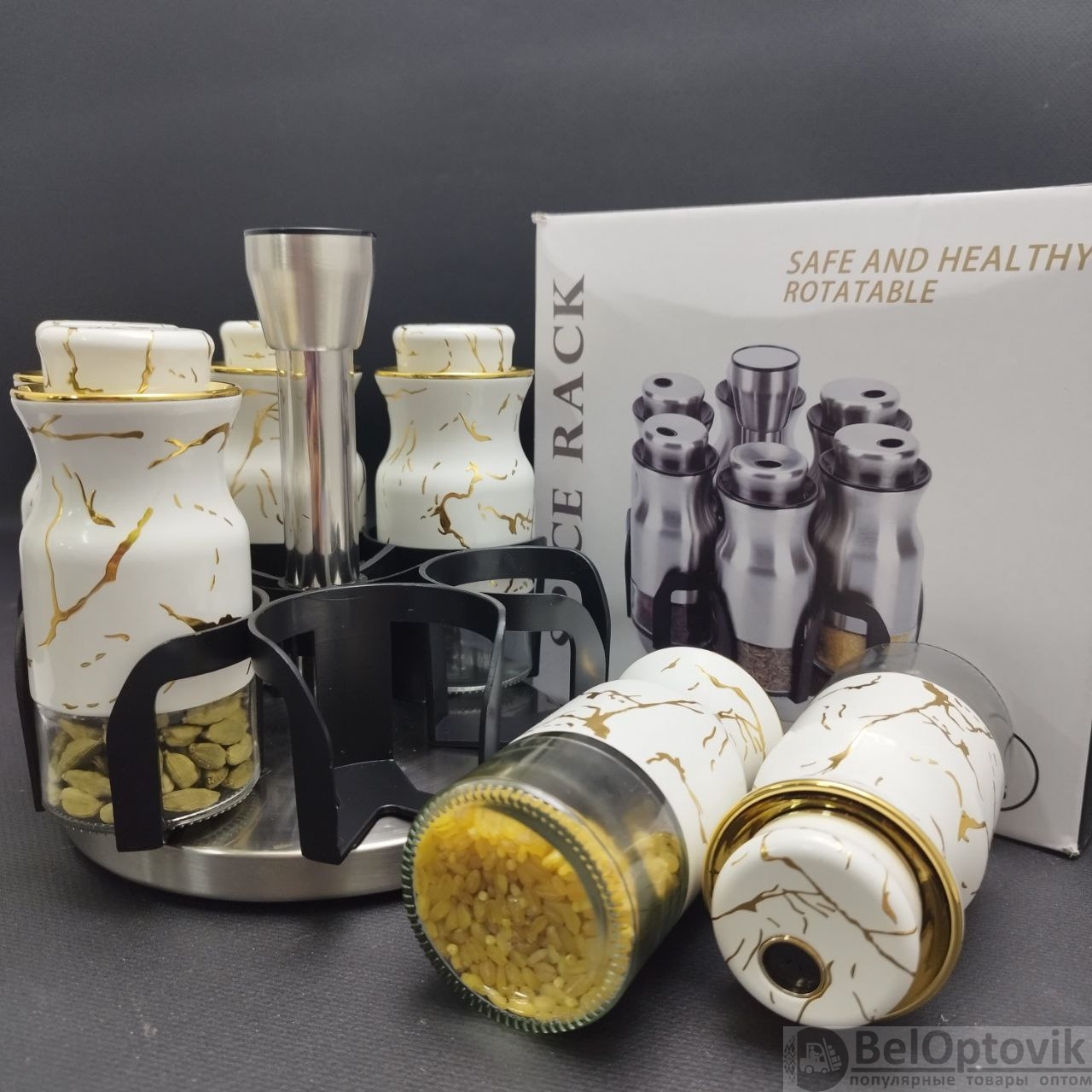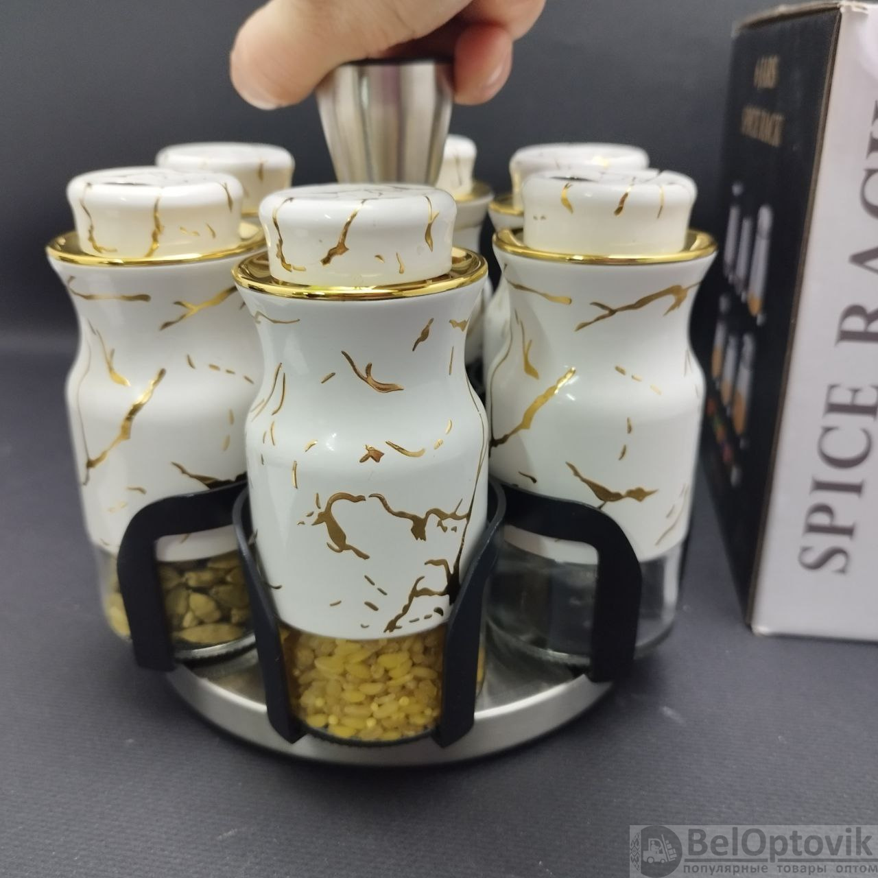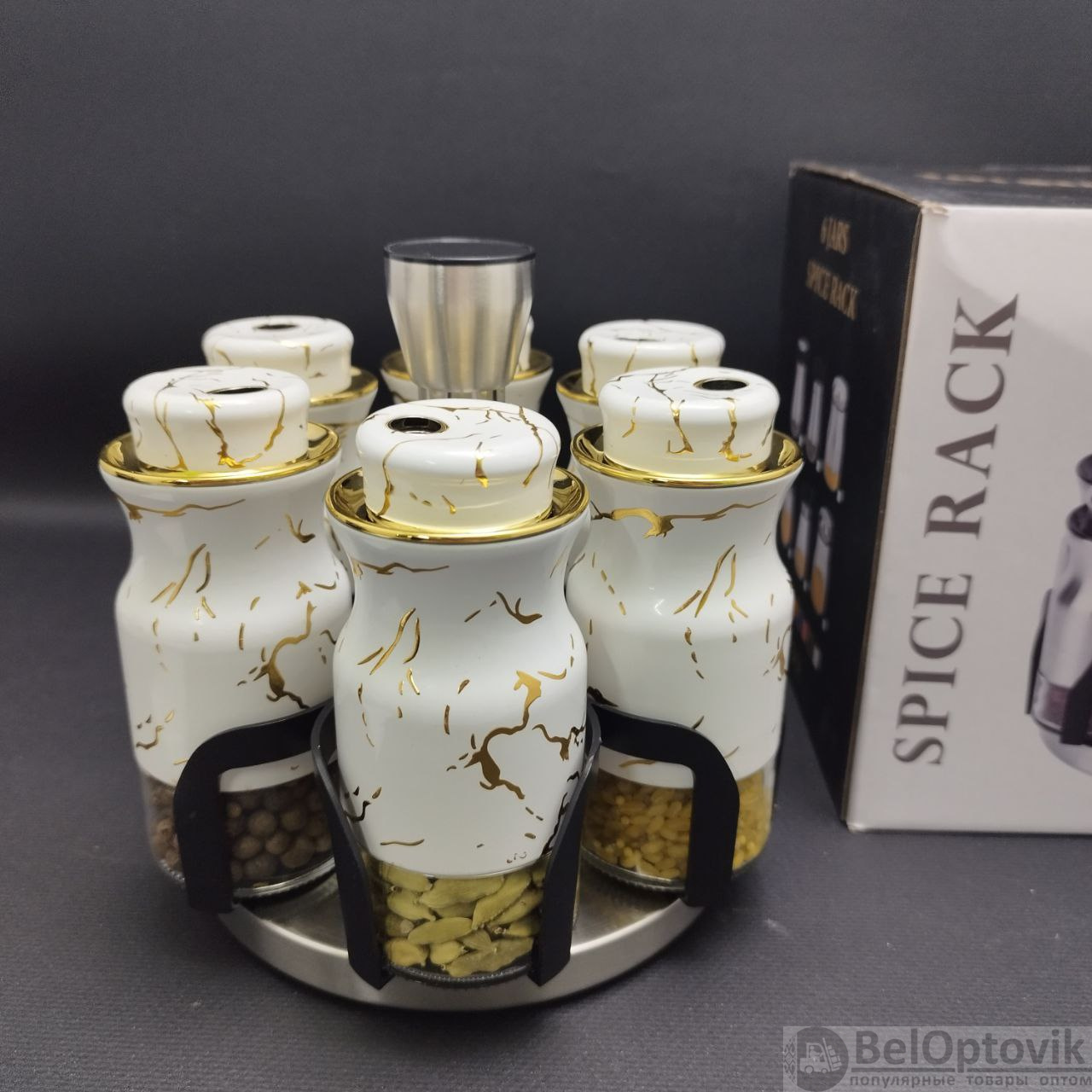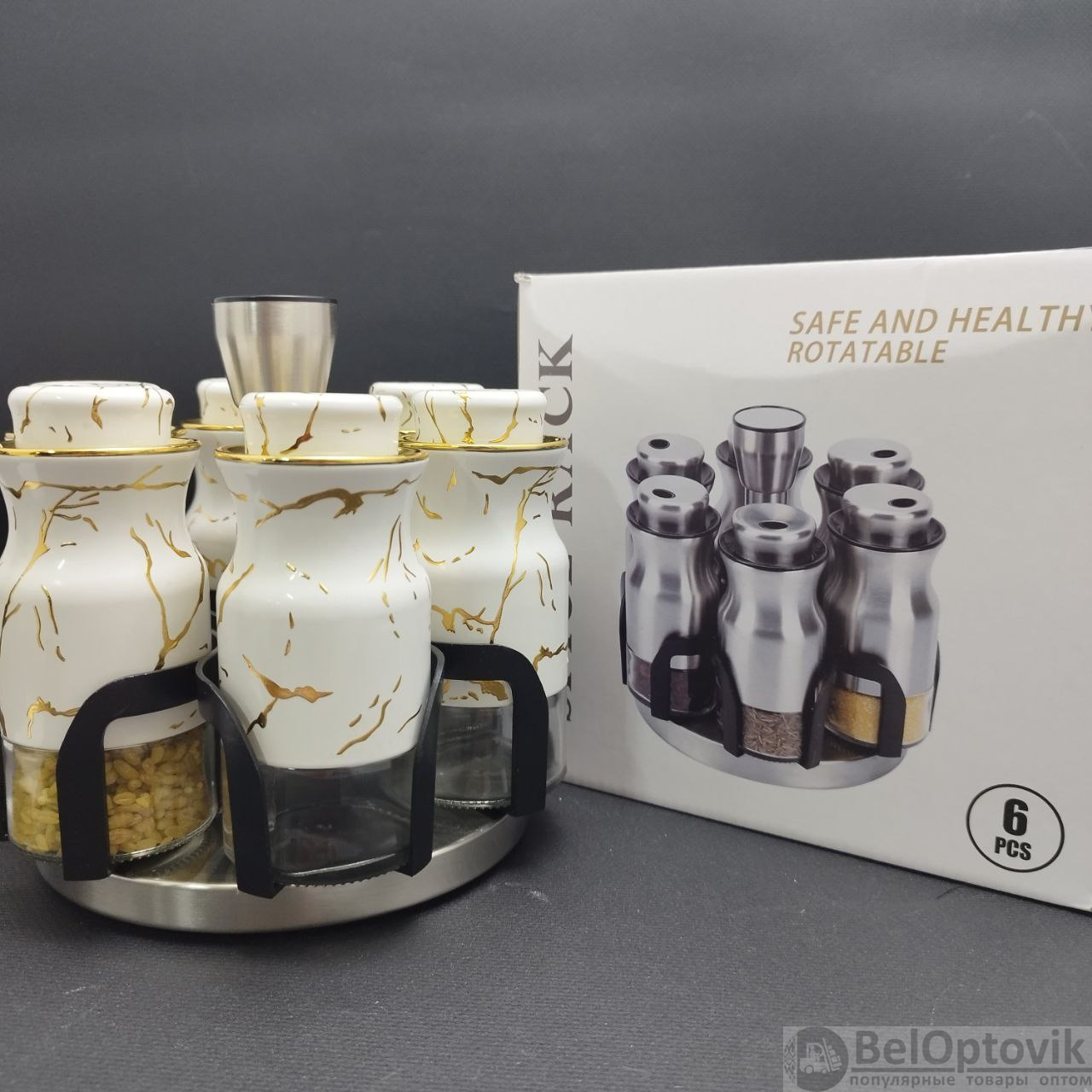Купить Набор для специй на вращающейся подставке Spice Rack Elite 6 предметов / Органайзер на кухню / Набор емкостей для хранения приправ на нашем сайте можно ОПТОМ от 20 шт. или не менее 5, если Вы покупаете у нас и другие товары (сборный заказ).