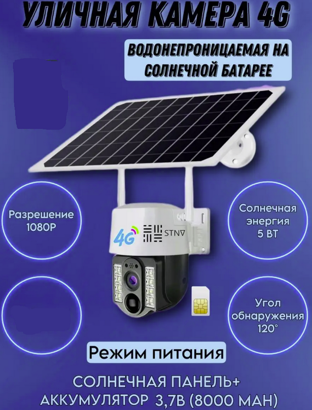 Эта камера подключается к сети Интернет через сотового оператора. Для работы ей нужна сим-карта. Подключение камеры к интернету по 4G сети позволяет просматривать изображение со смартфона, находясь в любой точке мира.