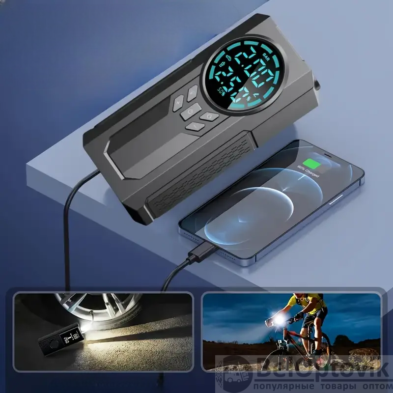 Быстрая интеллектуальная зарядка позволяет восстановить заряд батареи в кратчайшие сроки, что особенно важно в экстренных ситуациях. Этот компрессор подходит не только для автомобилей, но и для электромобилей, мотоциклов, велосипедов и даже спортивных мячей, что делает его универсальным решением для всех, кто ведет активный образ жизни.