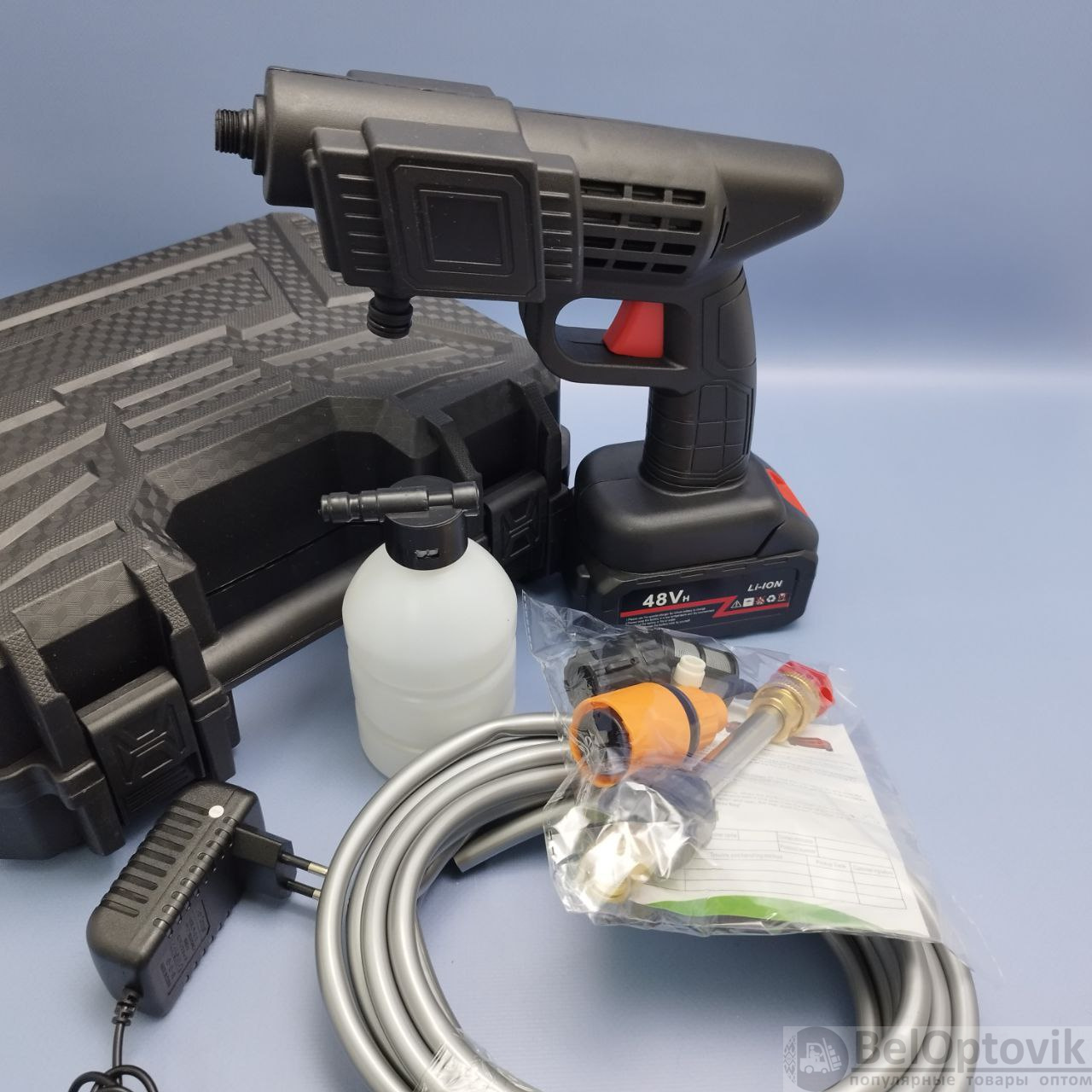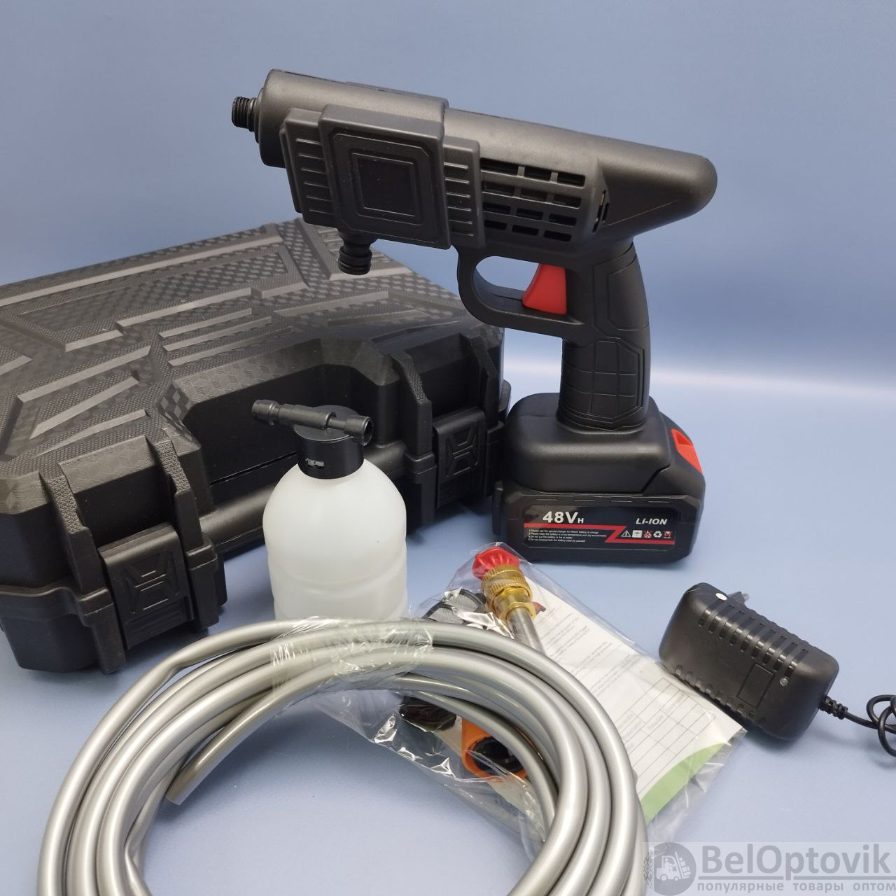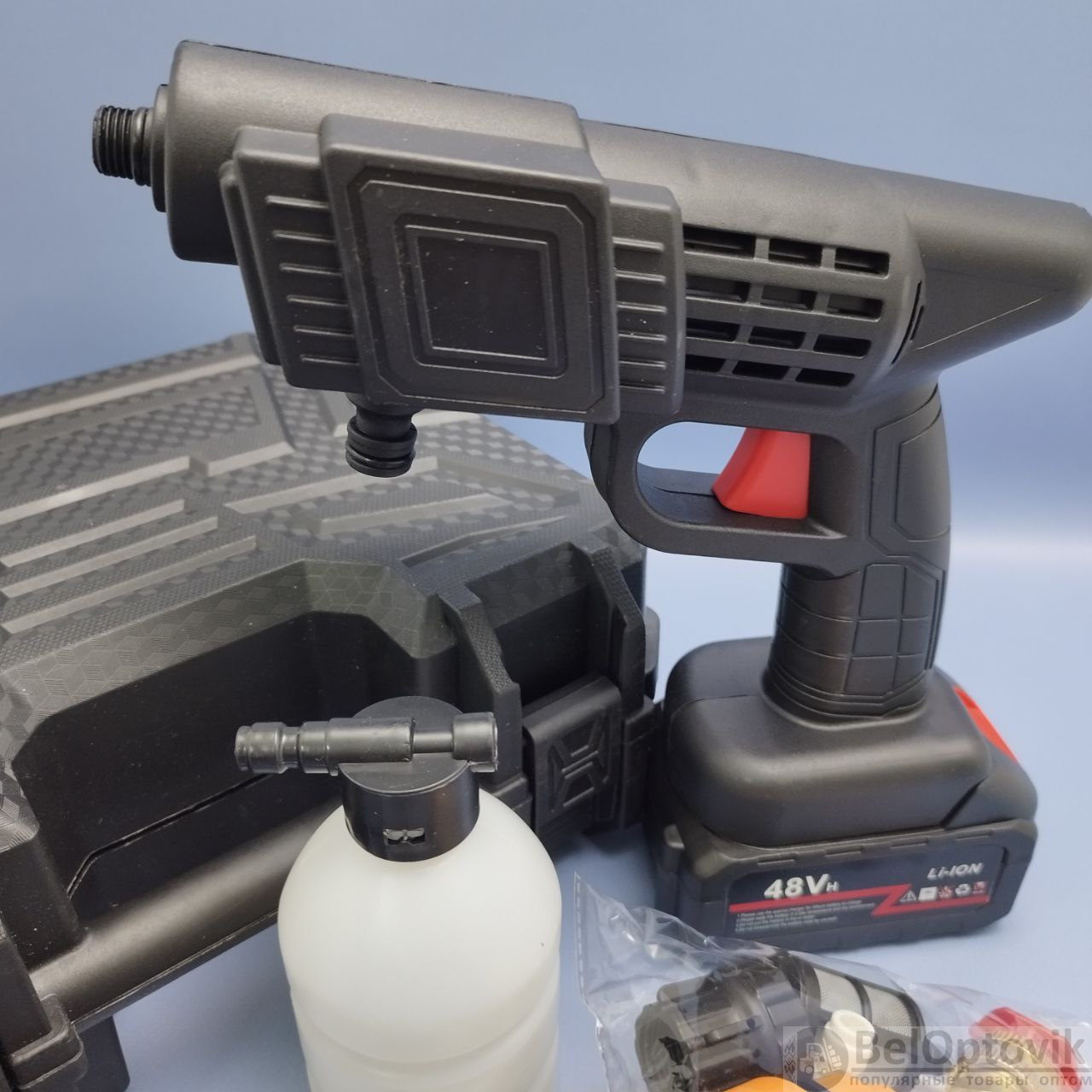 Купить Портативная аккумуляторная (48В) мойка для автомобиля в кейсе на нашем сайте можно ОПТОМ от 20 шт. или меньше, если Вы покупаете у нас и другие товары (сборный заказ).