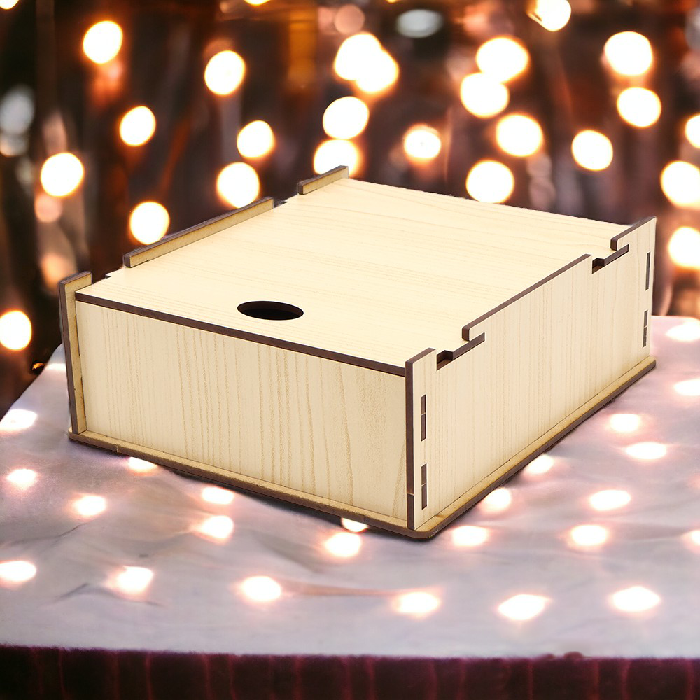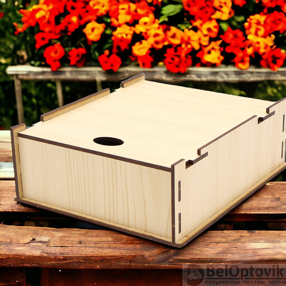 - Прочность и долговечность: изготовлена из HDF, материал обладает высокой степенью устойчивости к влаге и механическим повреждениям, что обеспечивает долговечность коробки.